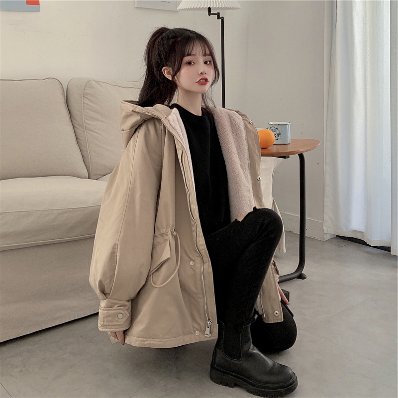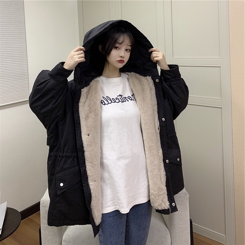 300斤特大码胖mm厚款连帽外套女秋冬新款派克服女宽松百搭棉服女