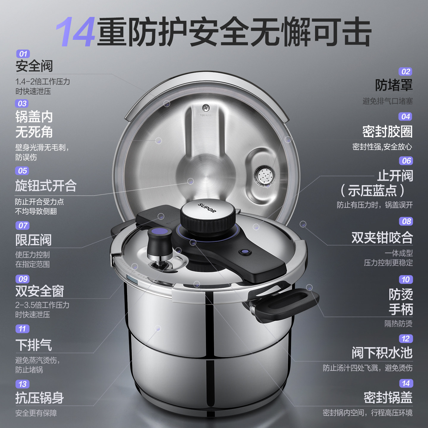 【新品】苏泊尔304不锈钢高压锅家用压力锅防爆不挑灶官方旗舰店