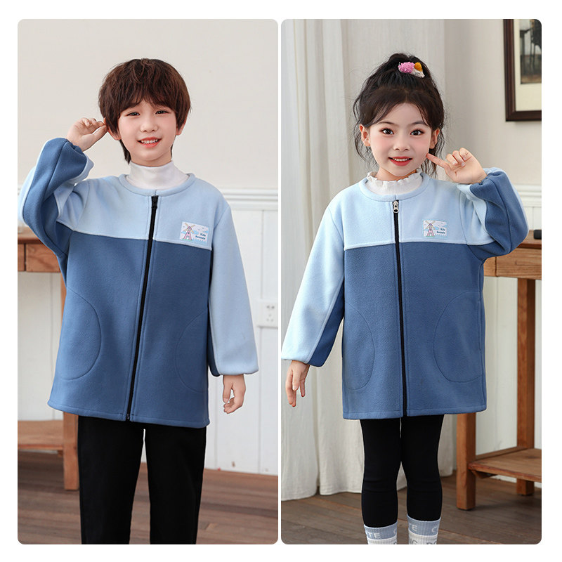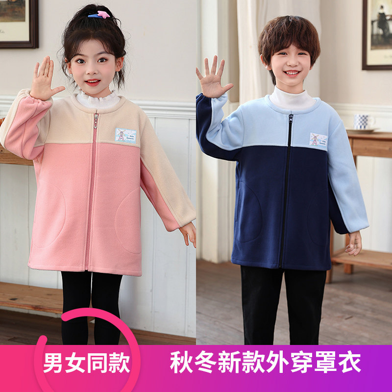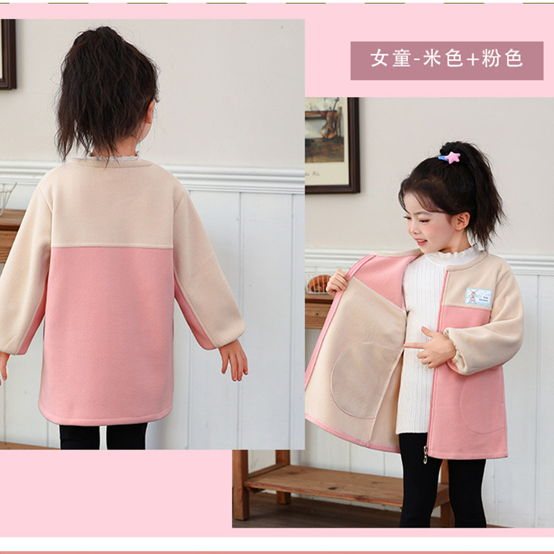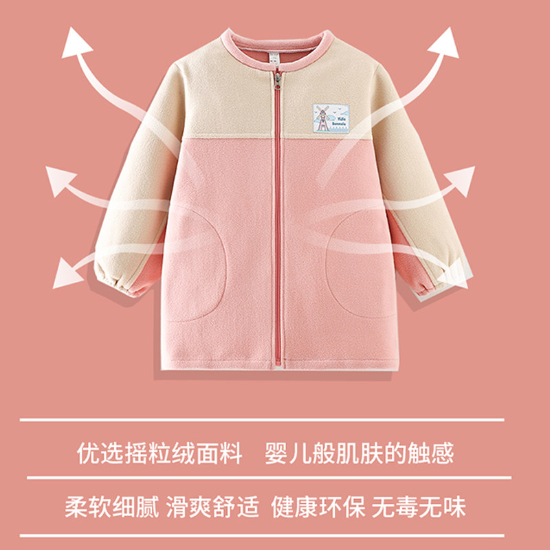男女童摇粒绒羽绒服罩衣儿童长袖拉链棉服护衣宝宝吃饭画画防脏服