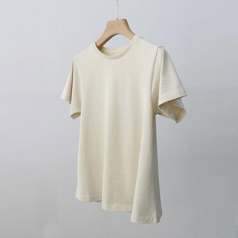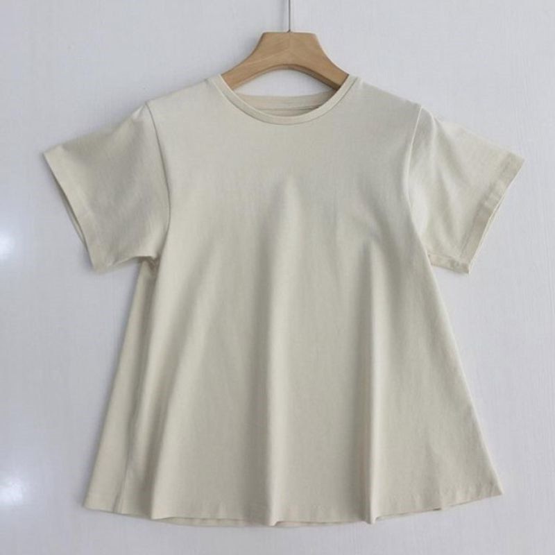 夏季简约休闲风纯色短袖女装胖妹妹2-300斤超大码伞状A字下摆T恤