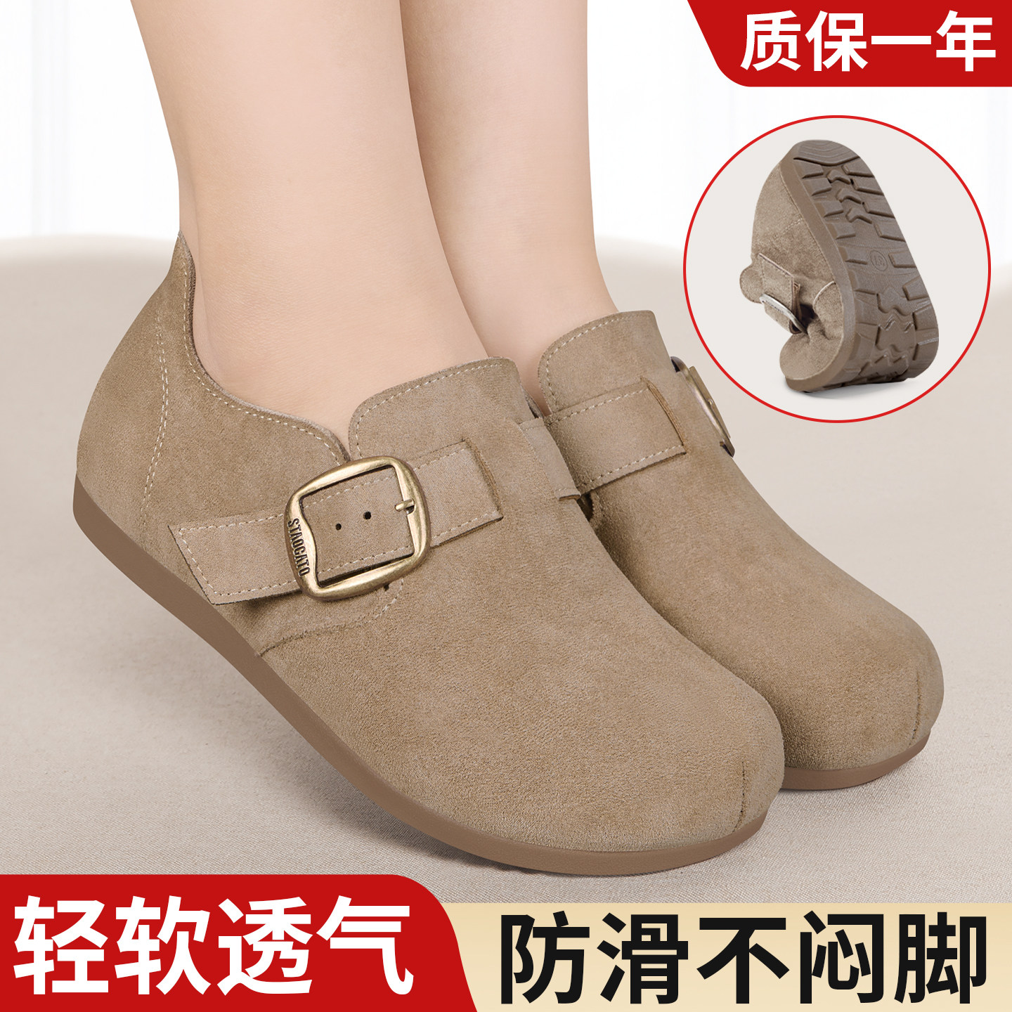 老北京布鞋女春季透气轻便舒适软底中老年妈妈鞋防滑一脚蹬勃肯鞋