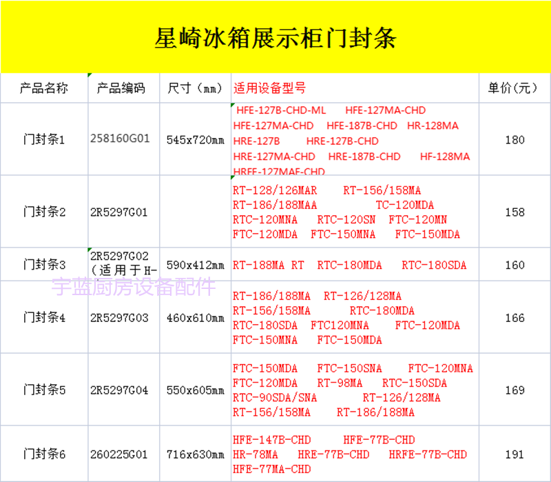 星崎HOSHIZAKI冰箱配件门封条 平台四门冰箱密封条 展示柜门胶条