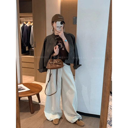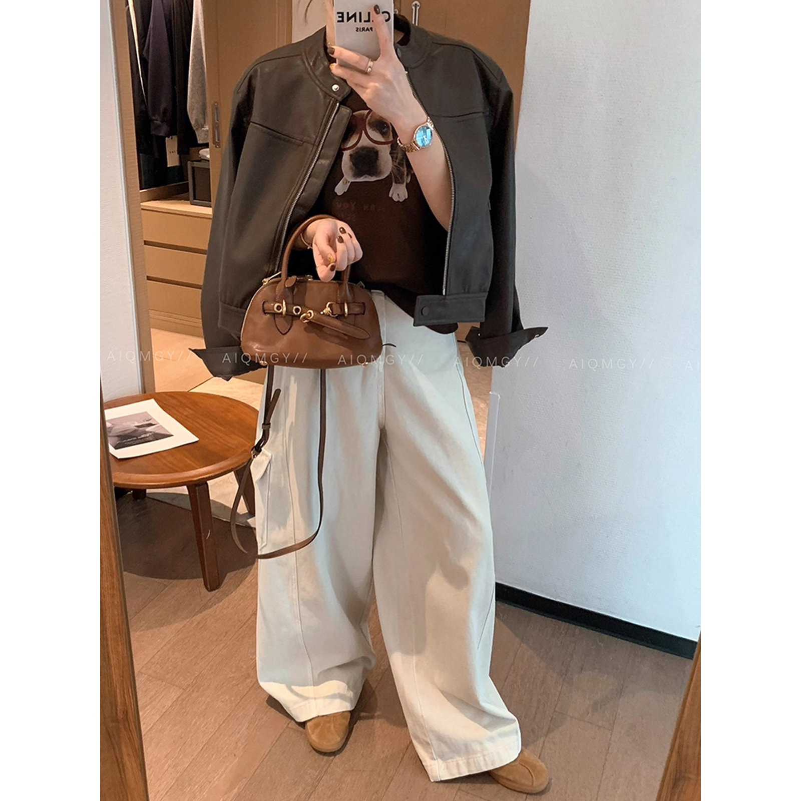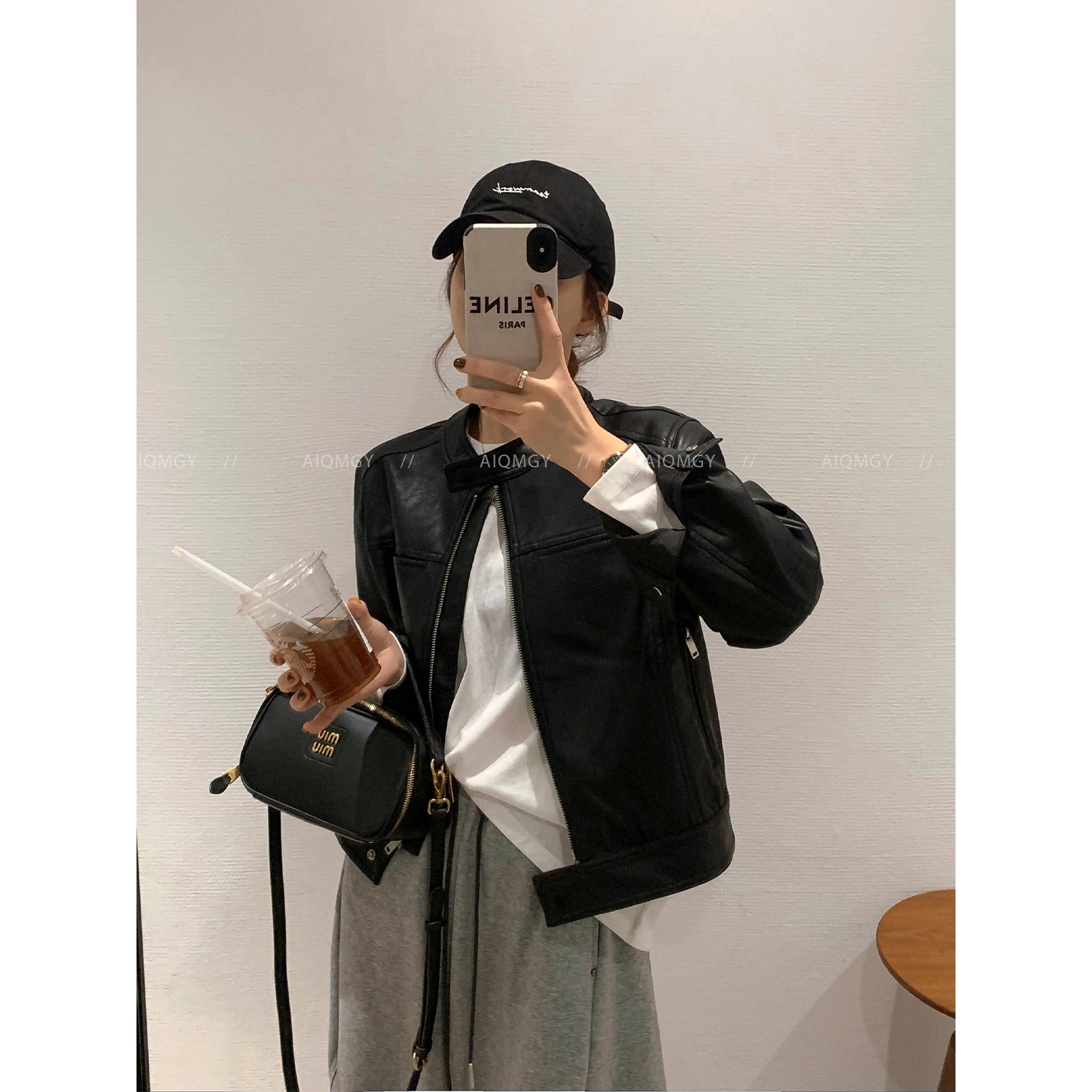 爱情魔鬼鱼 咖色立领休闲皮衣外套女2025年秋季新款短款夹克上衣