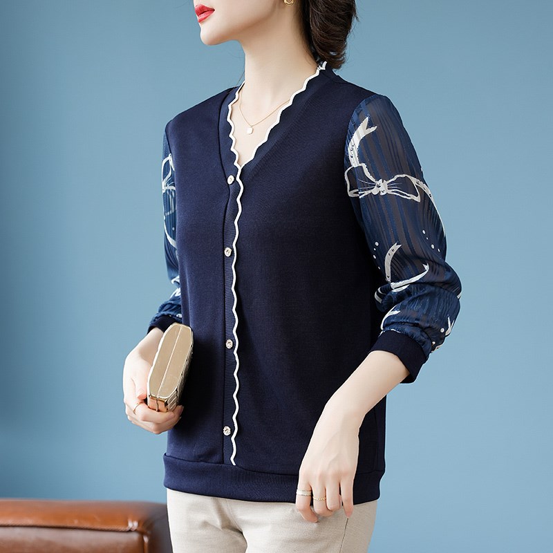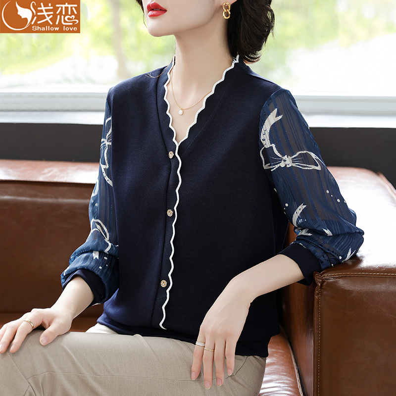 妈妈春秋洋气长袖T恤中年女春装薄款打底小衫中老年气质遮肚上衣