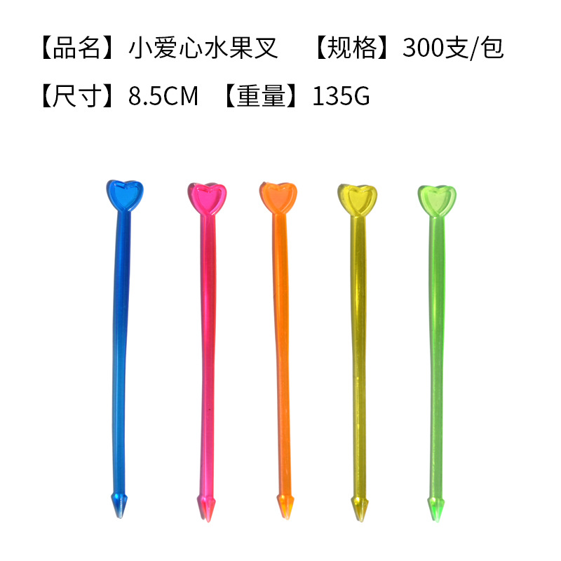 一次性创意爱心造型彩色塑料水果叉拼盘装饰水果签酒吧KTV用品