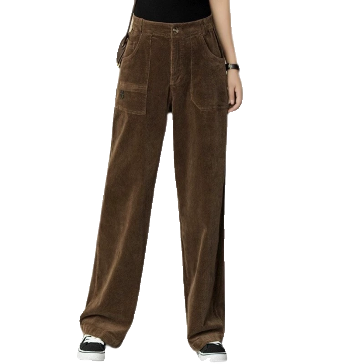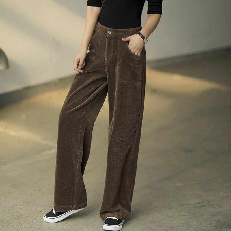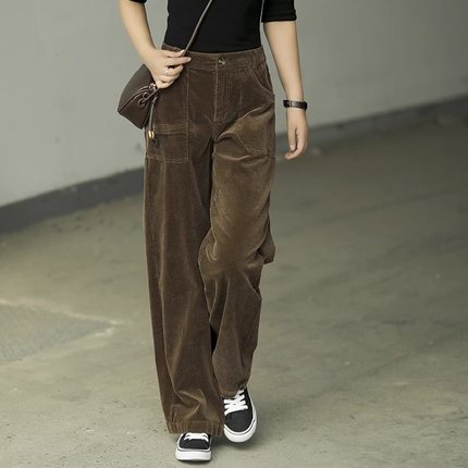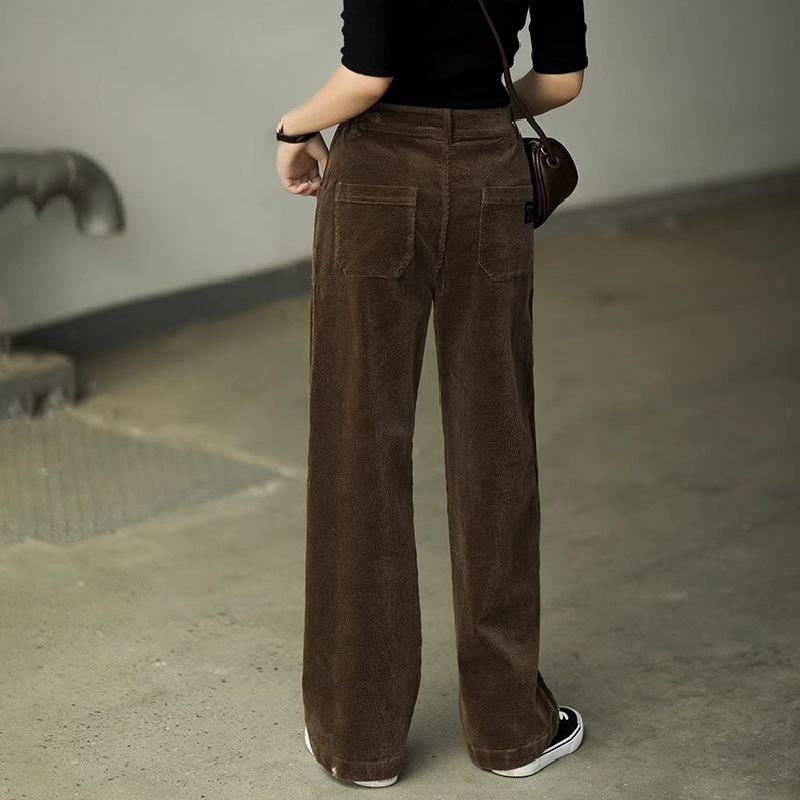 春秋复古灯芯绒阔腿裤女冬季深咖色高腰百搭条绒直筒垂感休闲裤