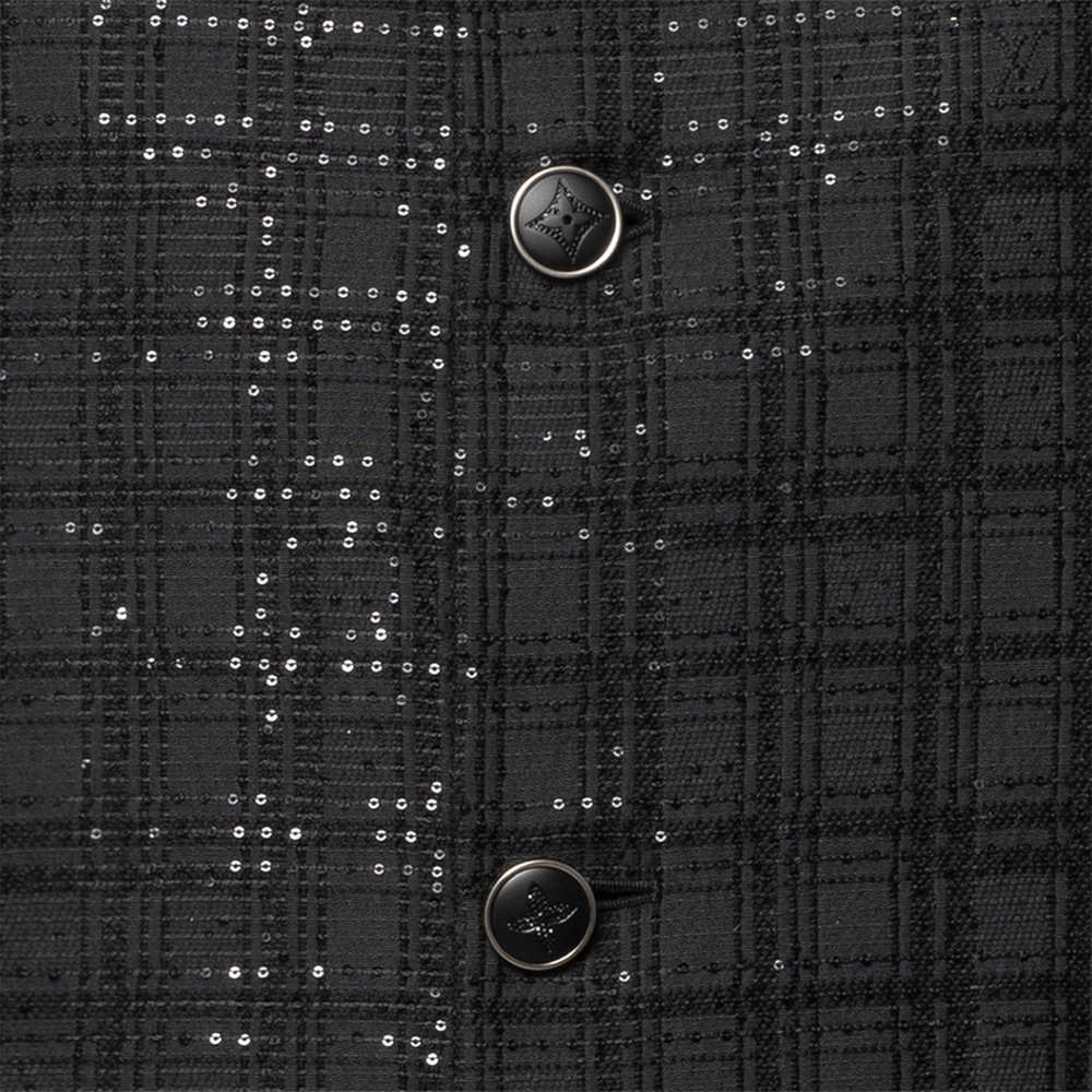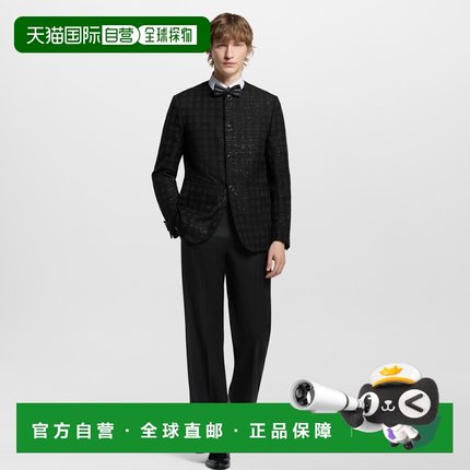 自营1h可退 欧洲直邮LV路易威登 男士黑色聚酯纤维格纹图案外套