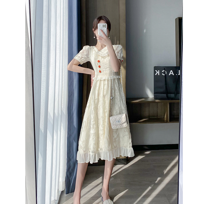 夏季新款时尚气质温柔洋气甜美初恋少女公主风修身长裙雪纺连衣裙