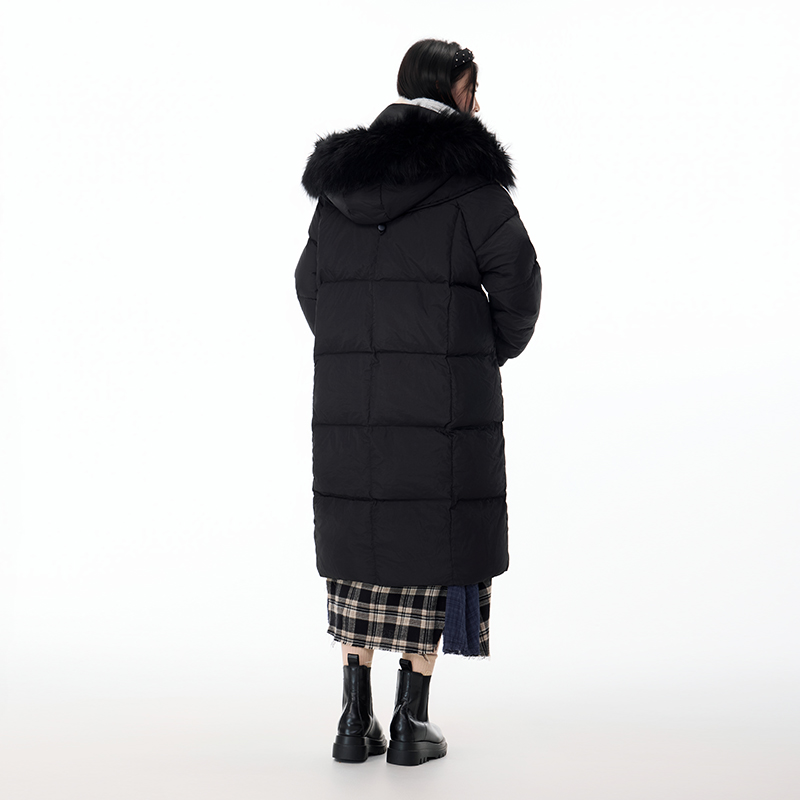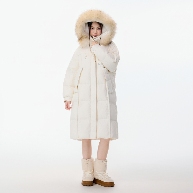 LAMLICKA白色长款毛领连帽羽绒服女冬季宽松保暖防寒面包服外套