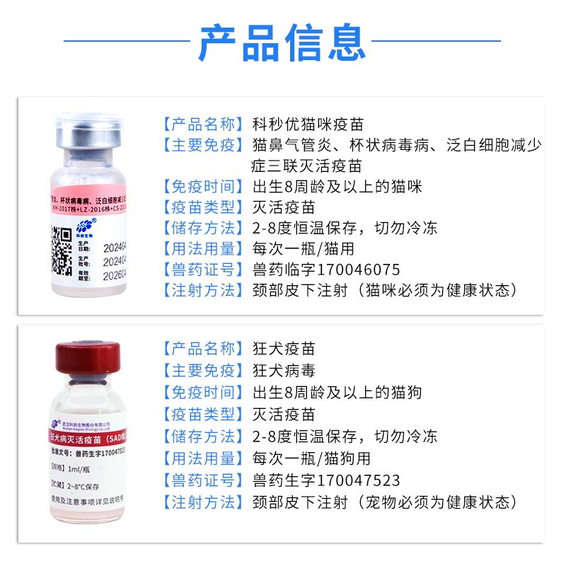 科妙优猫咪疫苗猫三联宠物预防猫鼻支猫瘟狂犬成幼猫一套自打套餐