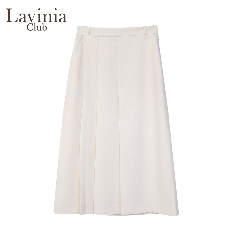 Lavinia白色简约高腰A字半身裙春新款职场通勤百褶裙Q45Q107