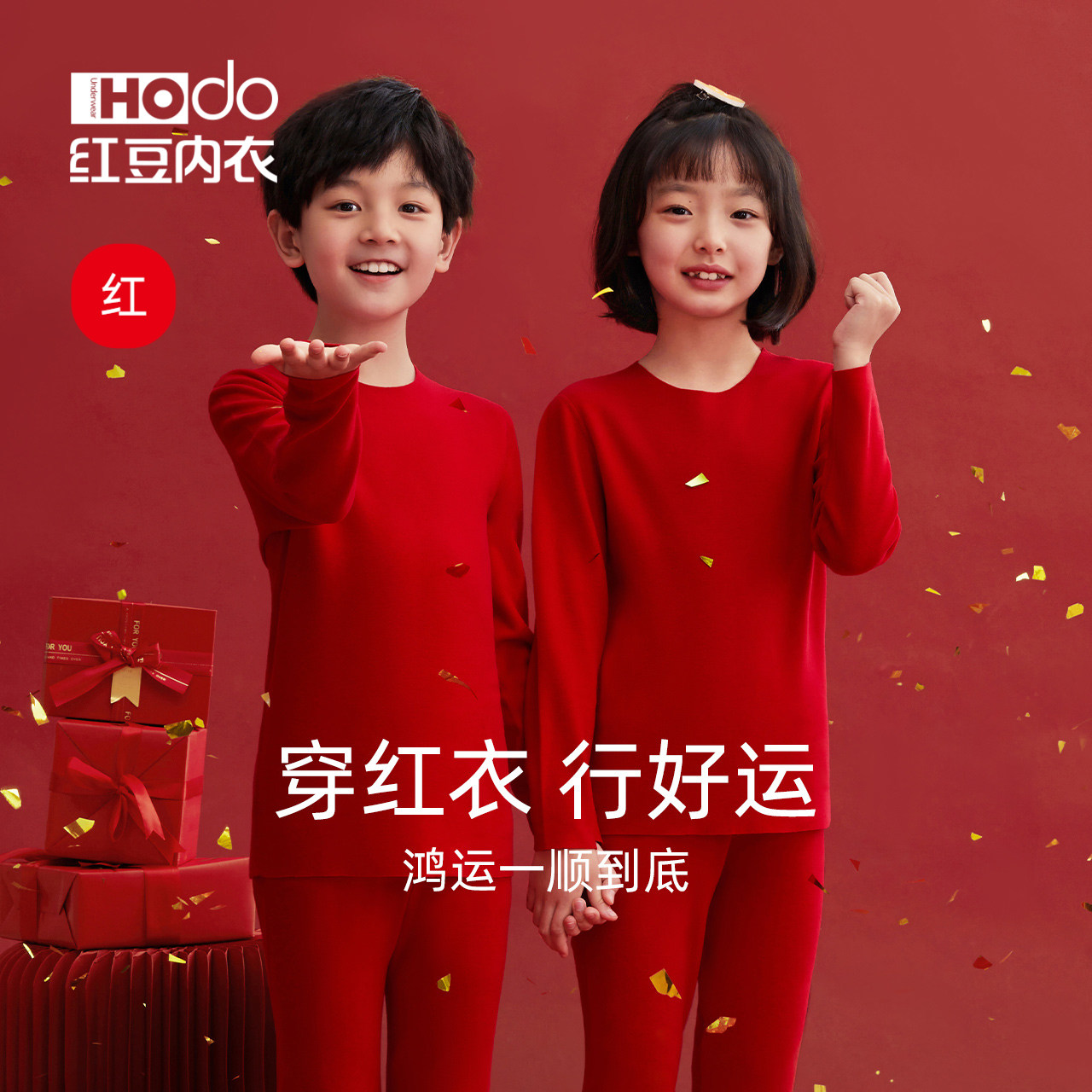 红豆儿童本命年大红色内衣内裤袜子男女孩童秋衣秋裤保暖套装