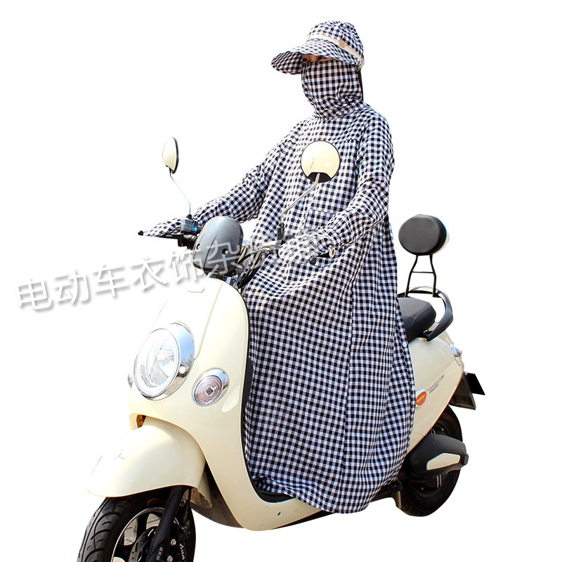 骑车开电动摩托车防晒衣服帽子纯棉遮阳衫手套长款防走光女夏季