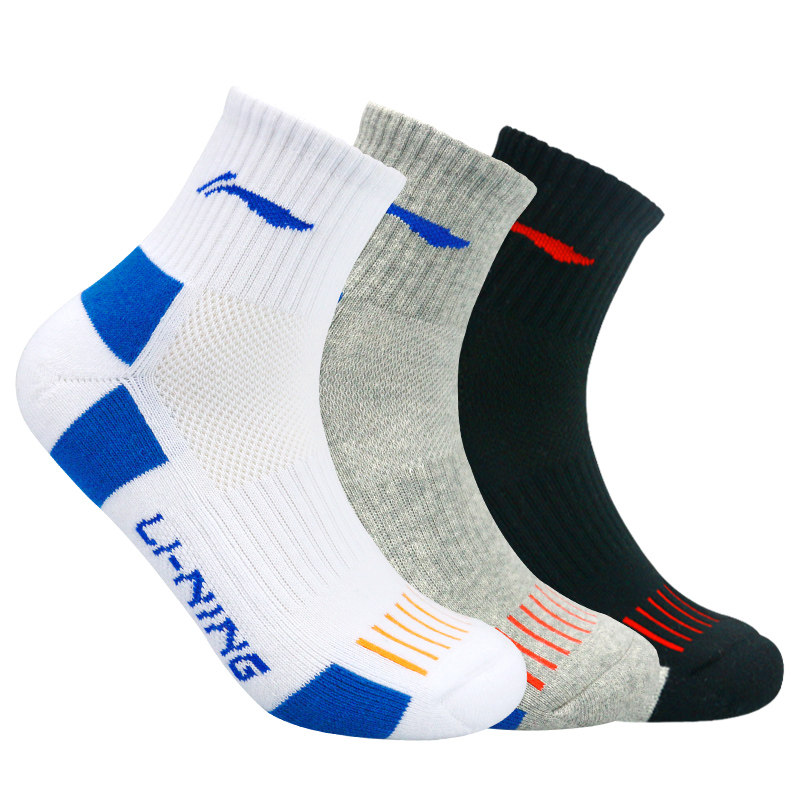 李宁袜子运动袜中筒篮球棉袜男加厚女羽毛球袜毛巾底暑期跑步白色