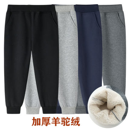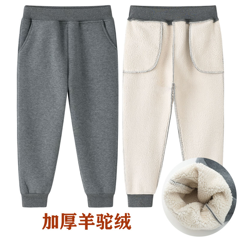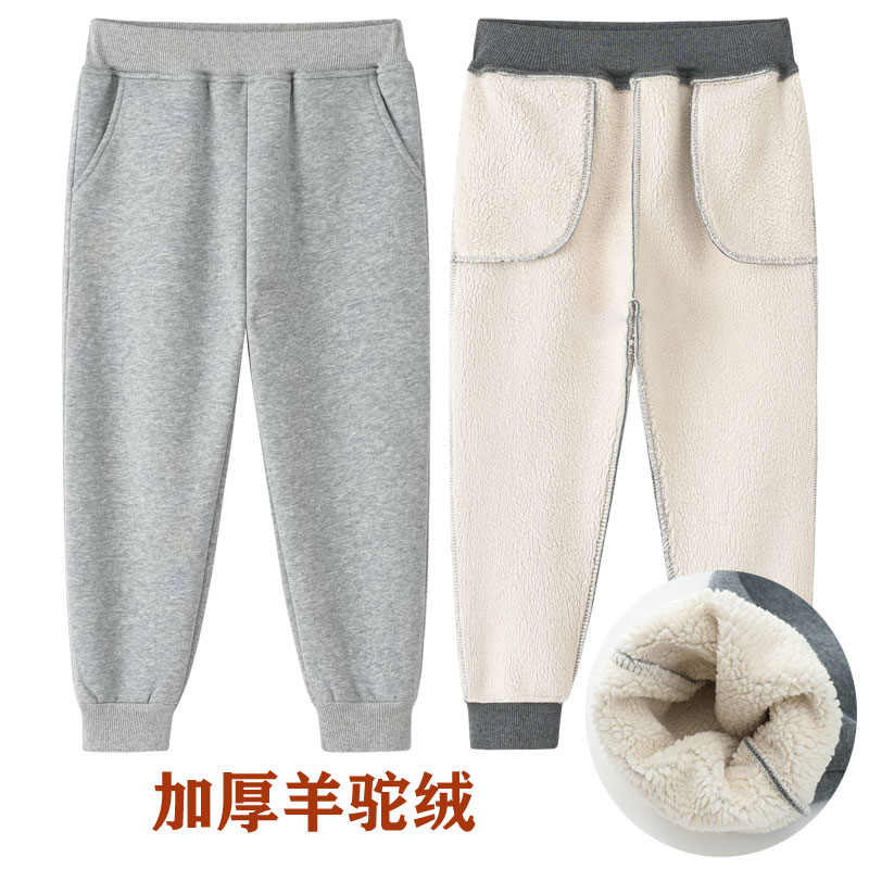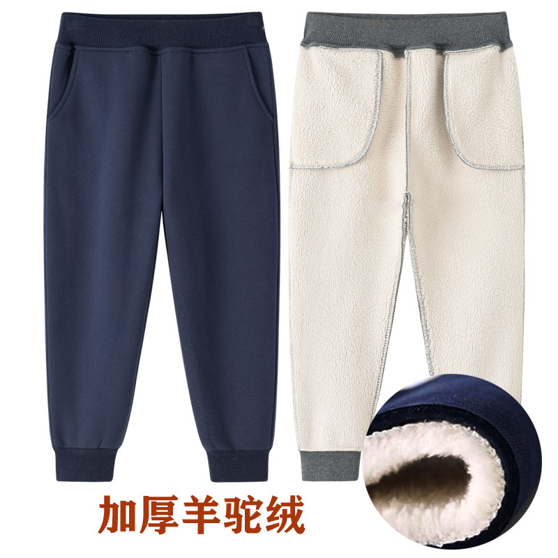 男童加绒加厚裤子男孩休闲裤女童加绒一体卫裤儿童冬季运动长裤