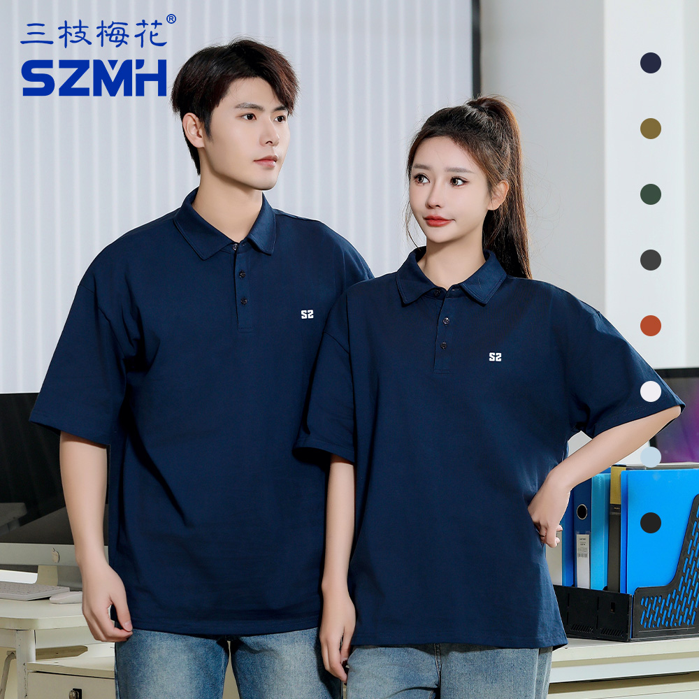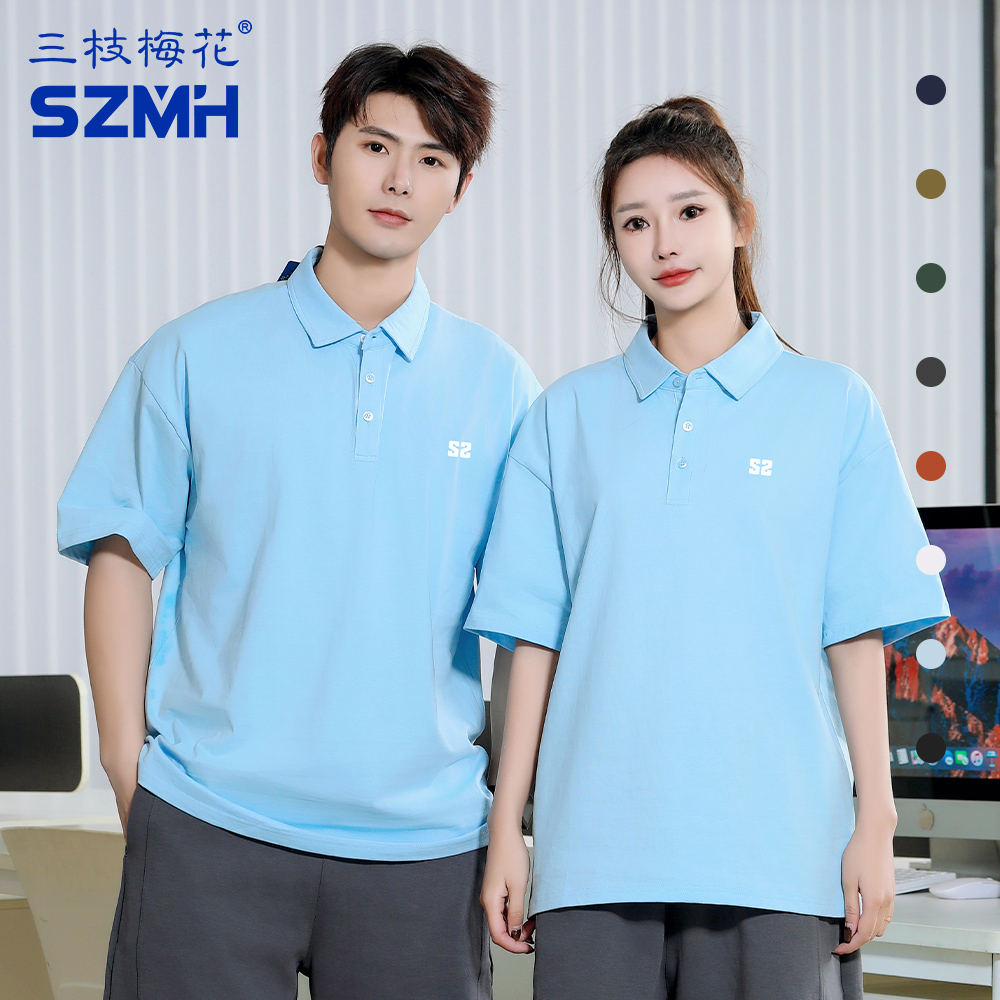 三枝梅花牌短袖polo衫男纯棉重磅240G翻领短t恤女纯色春夏季情侣