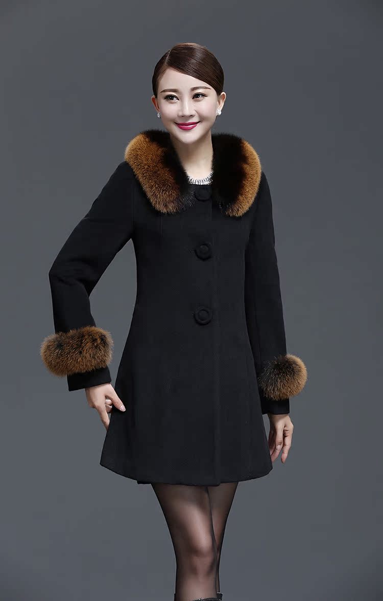 羊绒大衣女冬装新品高端狐狸毛领羊毛大衣中长款大码毛呢外套韩版
