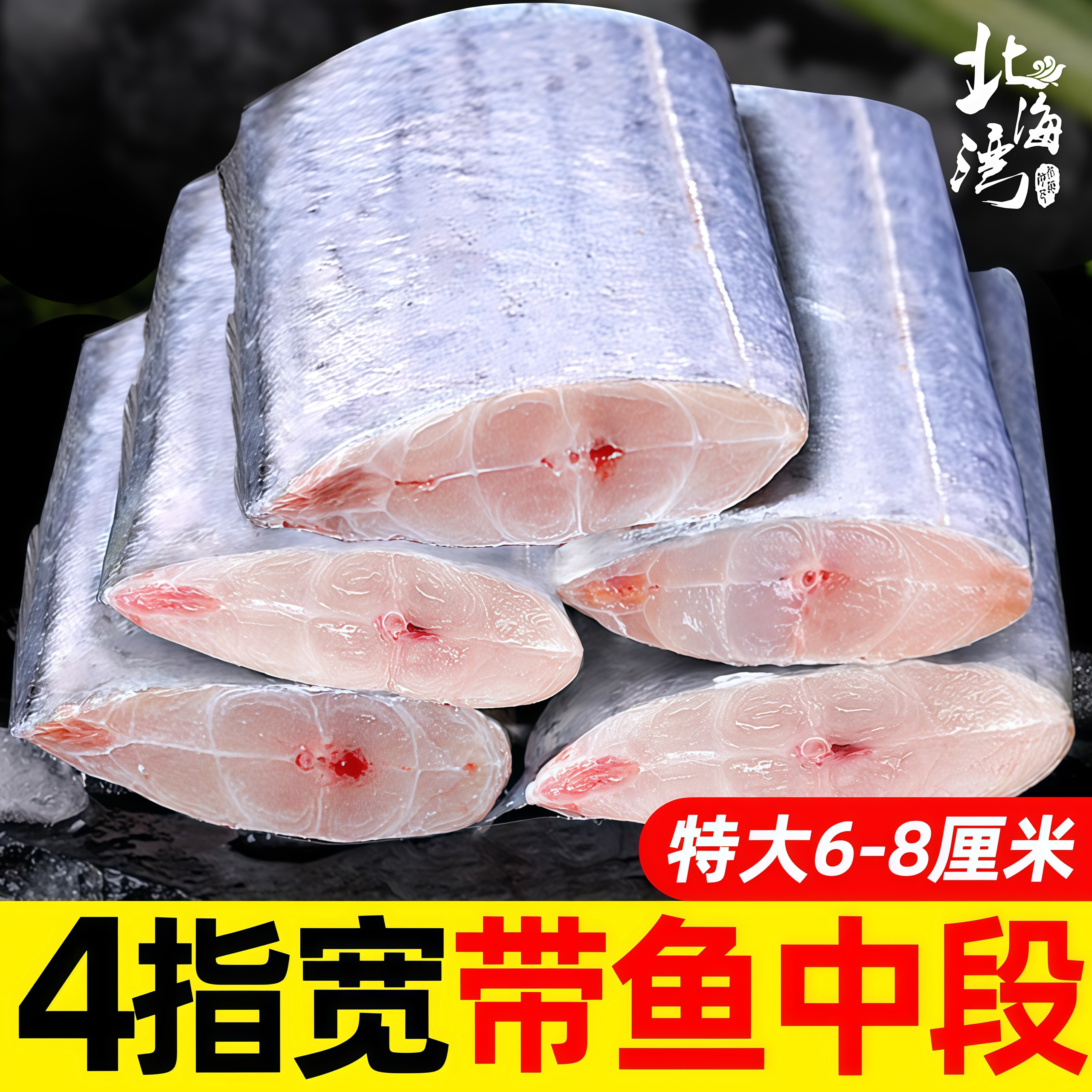 北海湾四指宽特大号新鲜带鱼中段冷冻无冰刀鱼段深海鱼固形物85%