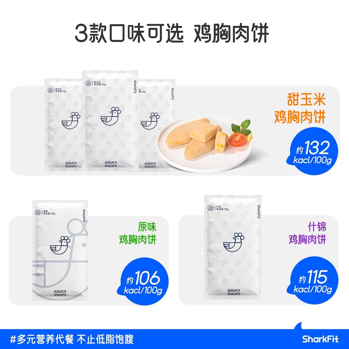 鲨鱼菲特鸡肉饼鸡胸肉饼即食健身代餐蔬菜饼减低脂卡轻食饱腹食品