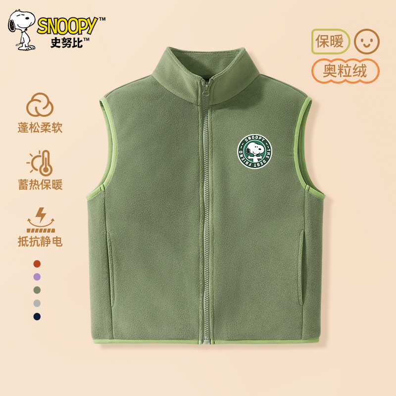 史努比男童马甲秋冬儿童摇粒绒外套2025新款大童加绒保暖坎肩上衣