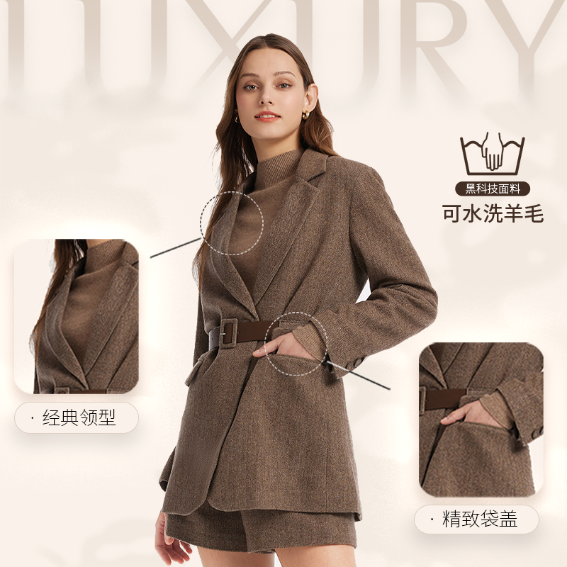 歌莉娅咖色西装外套女秋冬可露丽穿搭通勤高级感水洗羊毛呢子西服