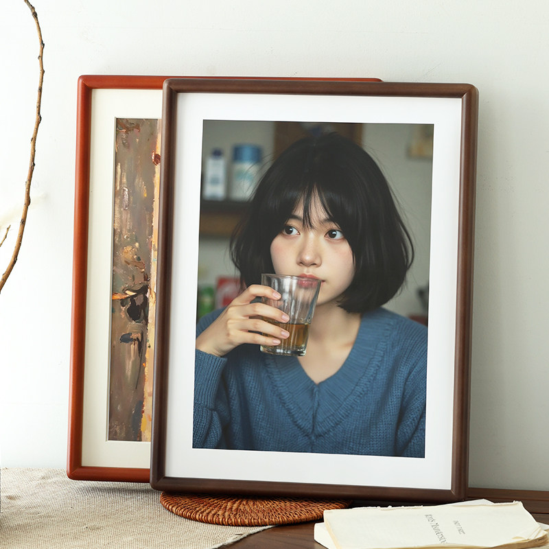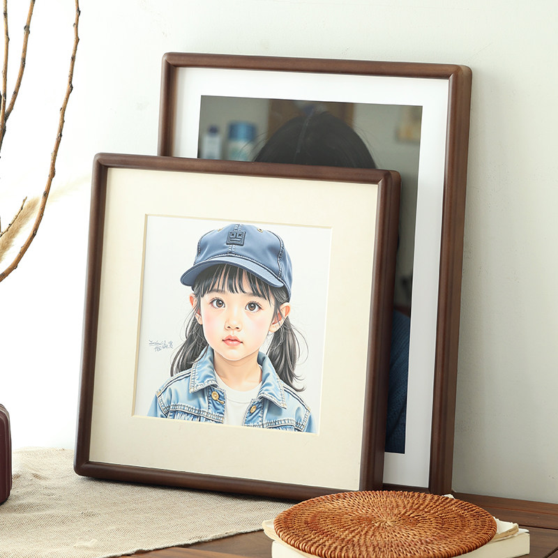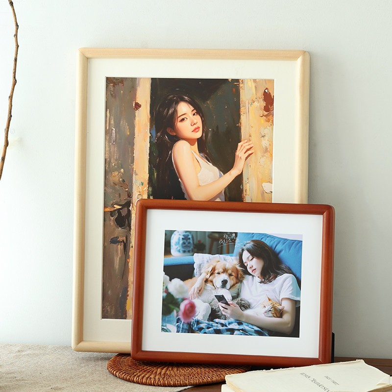 简约实木圆角相框a4A3装裱画框挂墙4k儿童结婚照片打印加相框框架