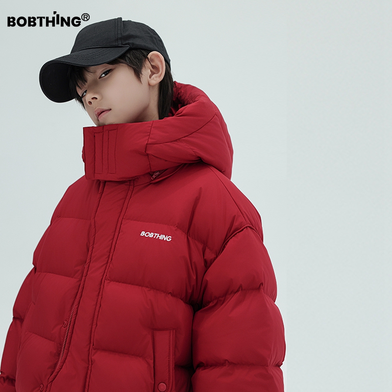 儿童质感红色羽绒服加厚连帽外套