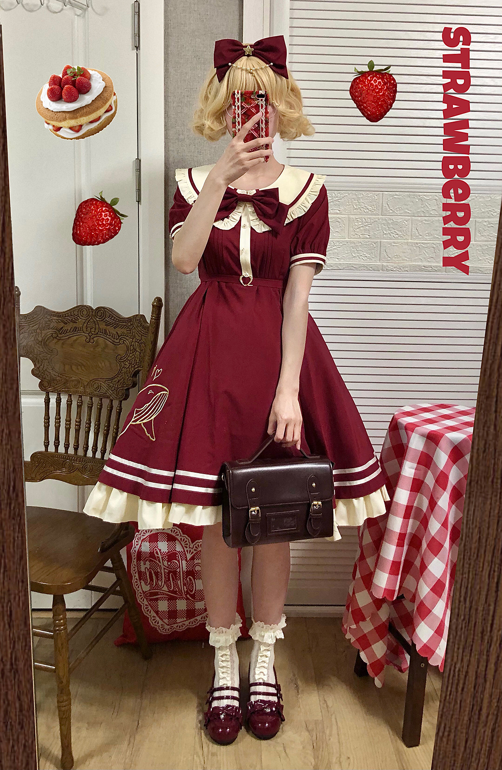 现货 草莓巫女小海鲸Lolita夏季原创日常海军水手正版op洛丽塔
