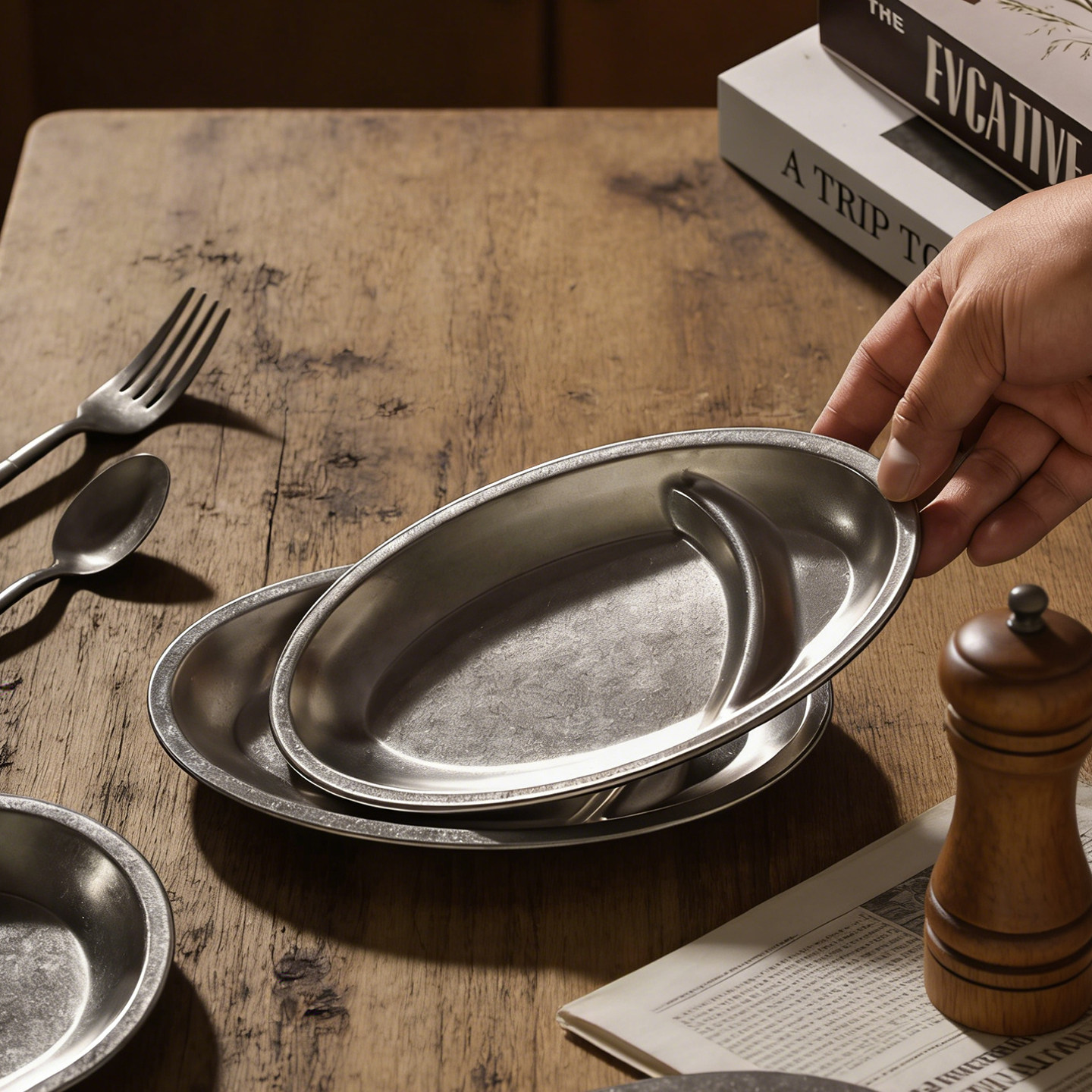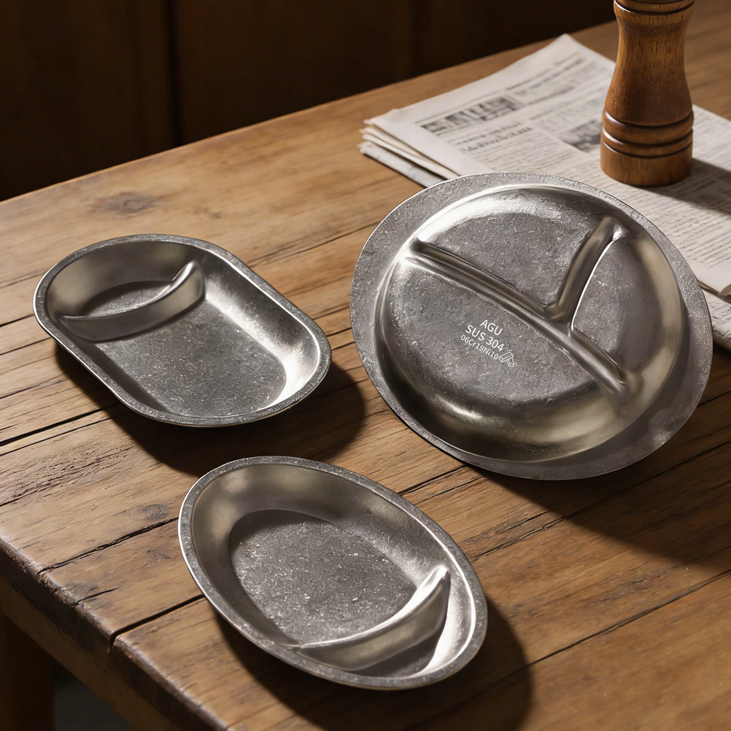 美式复古304不锈钢餐具分格餐盘减脂三格盘水果盘子高级感小吃盘
