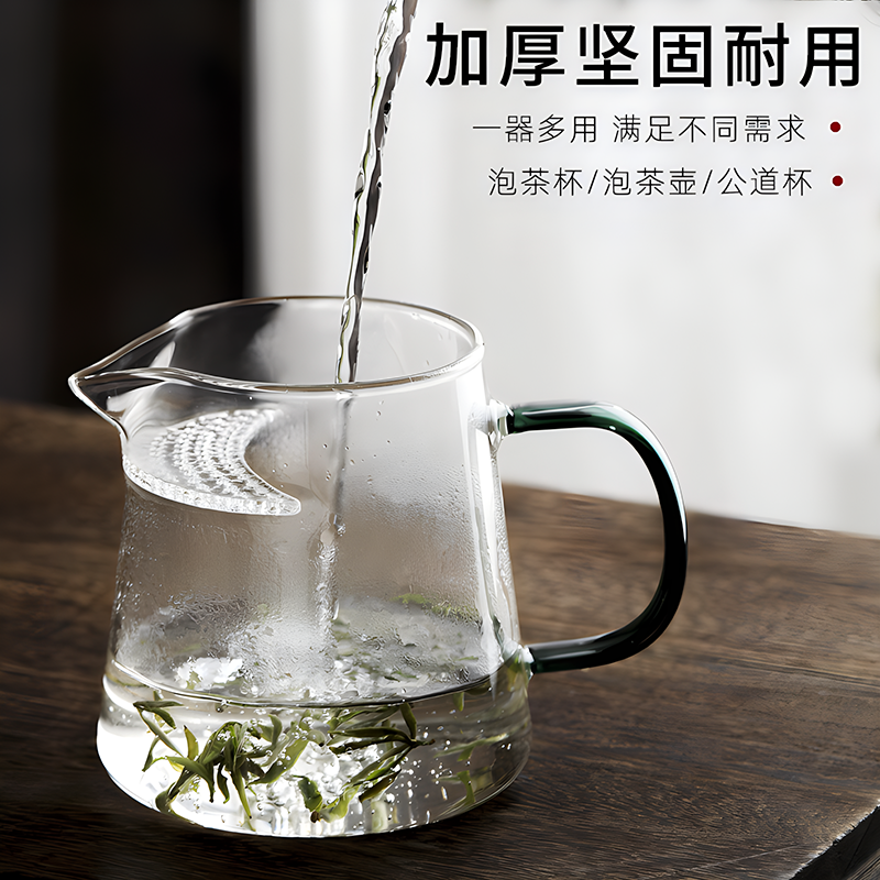 玻璃月牙公道杯茶滤一茶绿茶泡茶器茶具泡茶过滤公杯高硼硅分茶器
