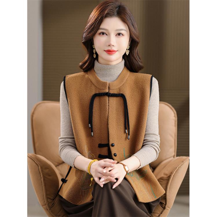外搭针织羊毛开衫毛衣背心外套女中老年妈妈装春秋季中式国风马甲