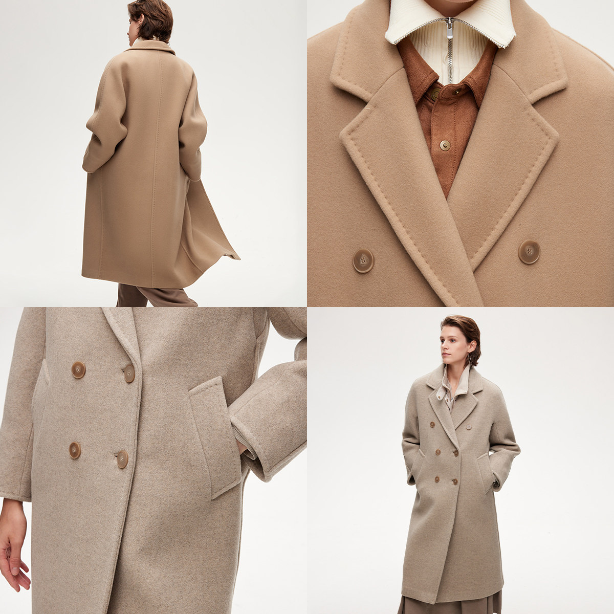 ONLY2025冬季新款慵懒廓形质感双排扣连肩袖绵羊毛毛呢大衣外套女