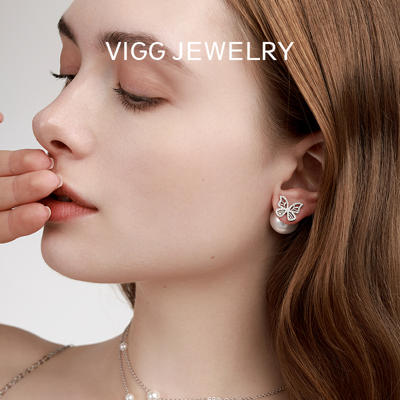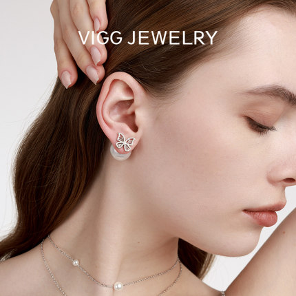 VIGG蝴蝶耳钉女轻奢小众珍珠耳饰
