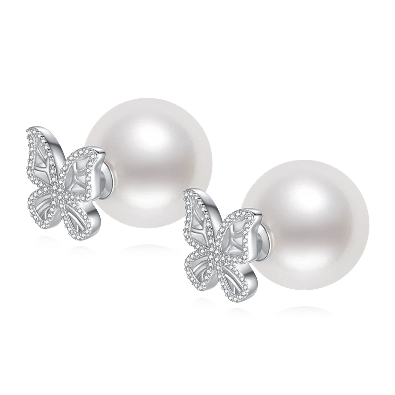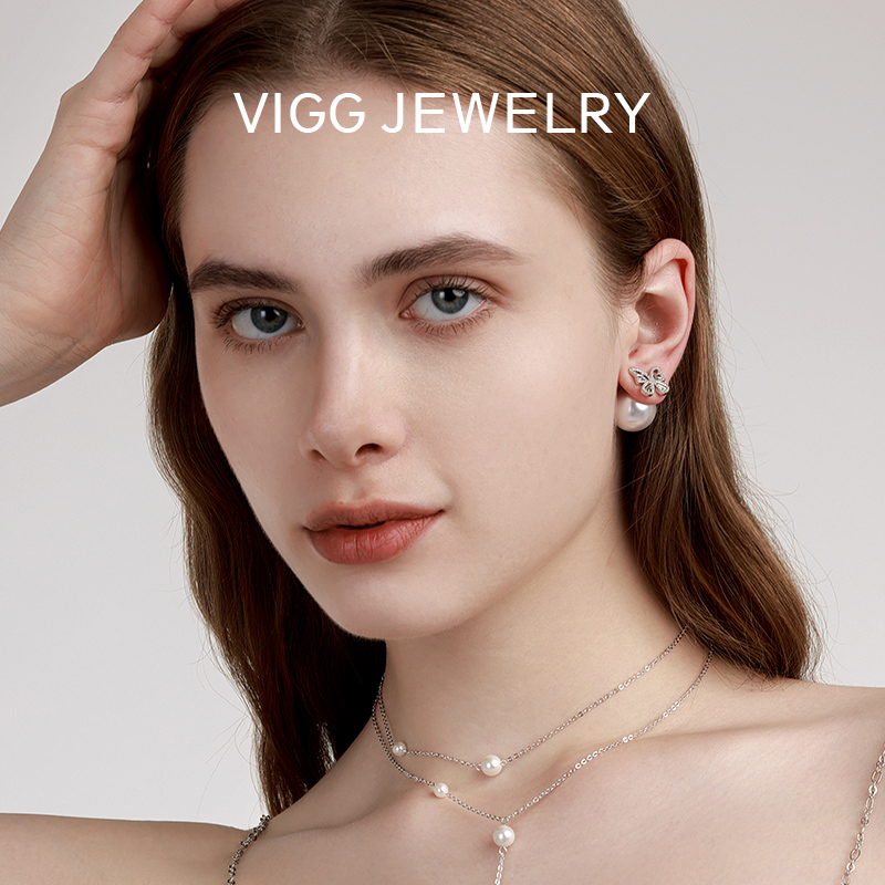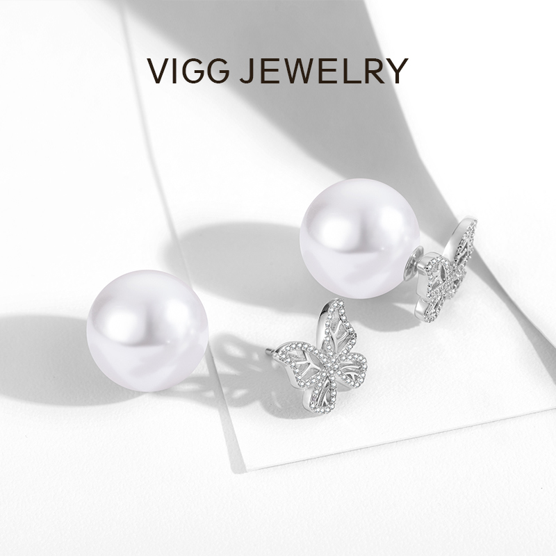 VIGG淡水贝珠蝴蝶耳钉女高级感新款潮耳环小众设计纯银耳针耳饰