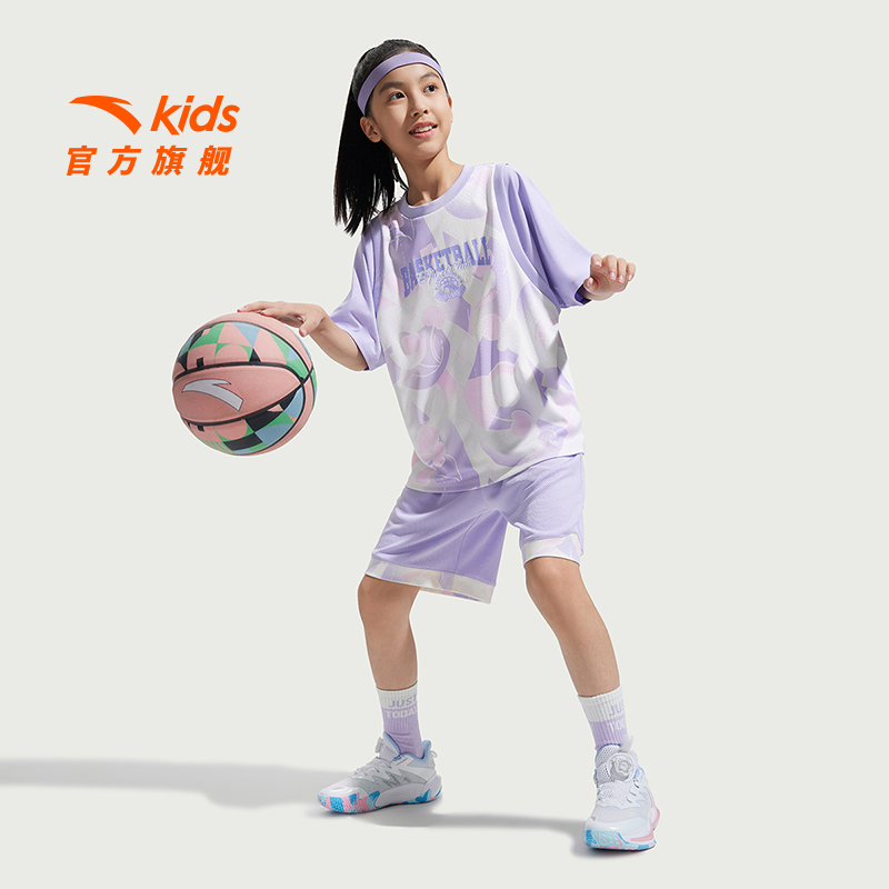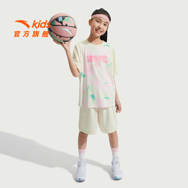安踏儿童装女童套装2025夏季速干篮球运动套装少女短袖T恤短裤