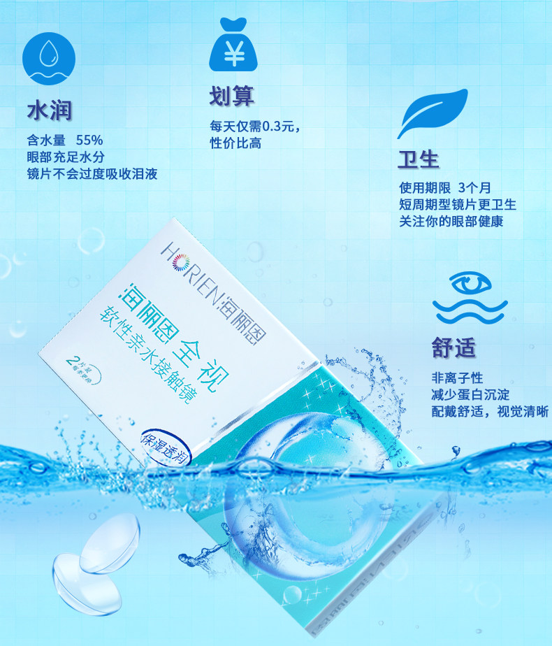 海俪恩全视季抛2片盒装透明片近视隐形眼镜3月抛非半年抛美瞳正品