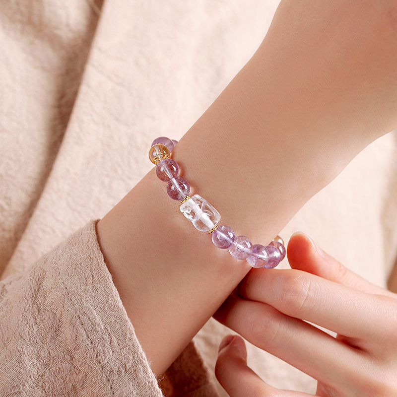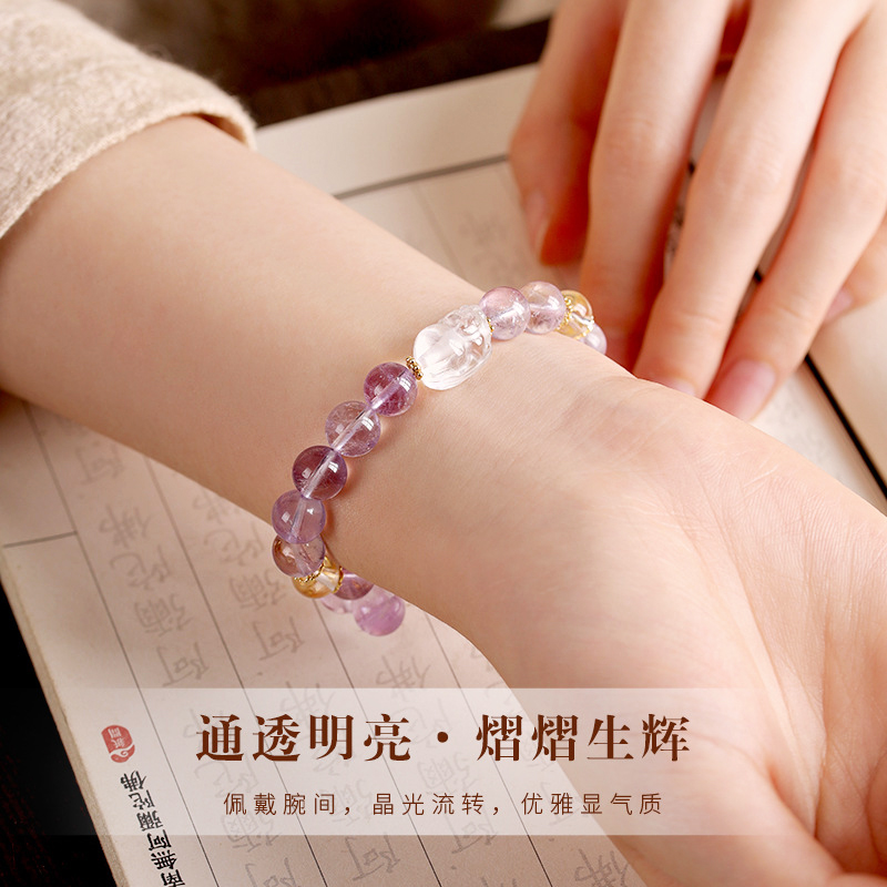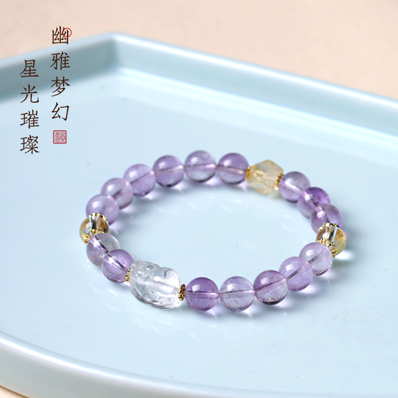 天然紫水晶手链轻奢小众精致招财暴富貔貅转运串珠黄水晶手串女款