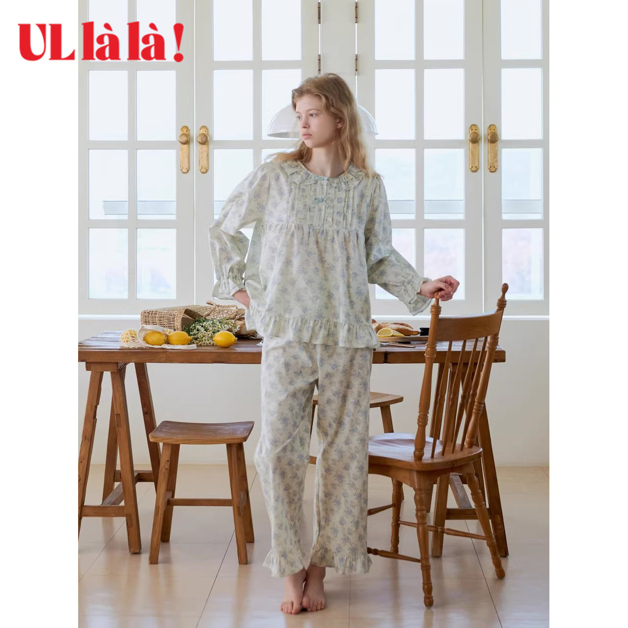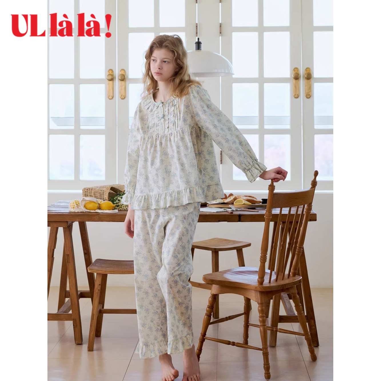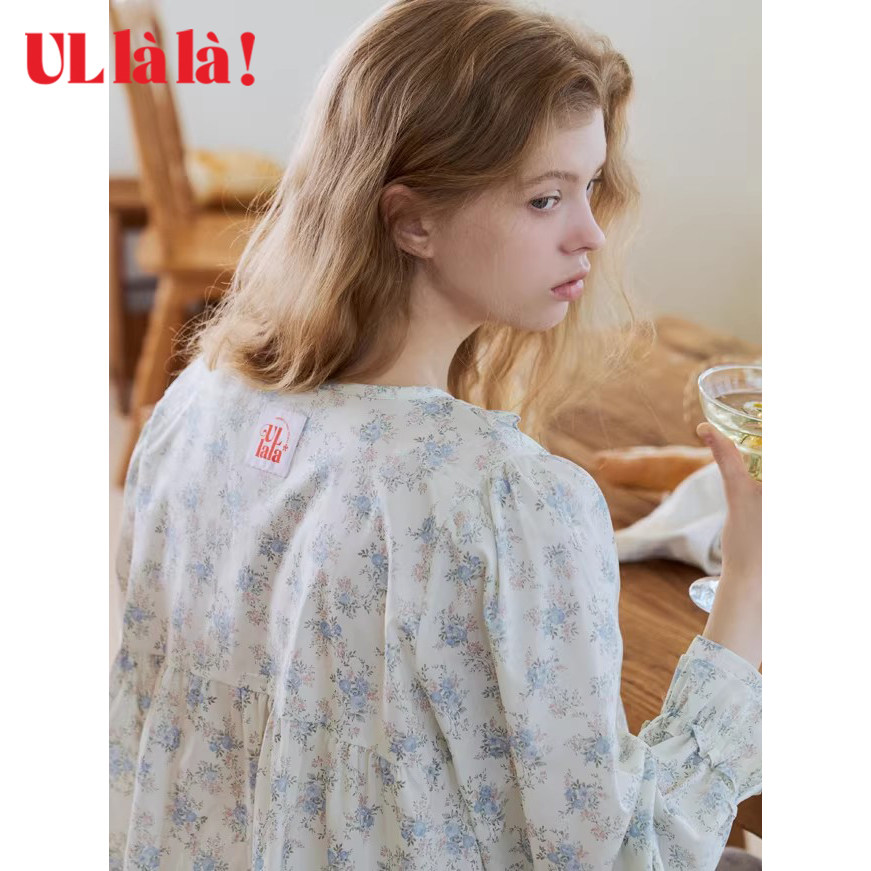Ullala纯棉碎花娃娃领睡衣套装