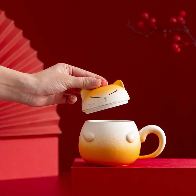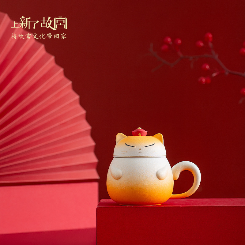 上新了故宫御猫说陶瓷杯办公家用泡茶杯带盖水杯中秋节开学礼物