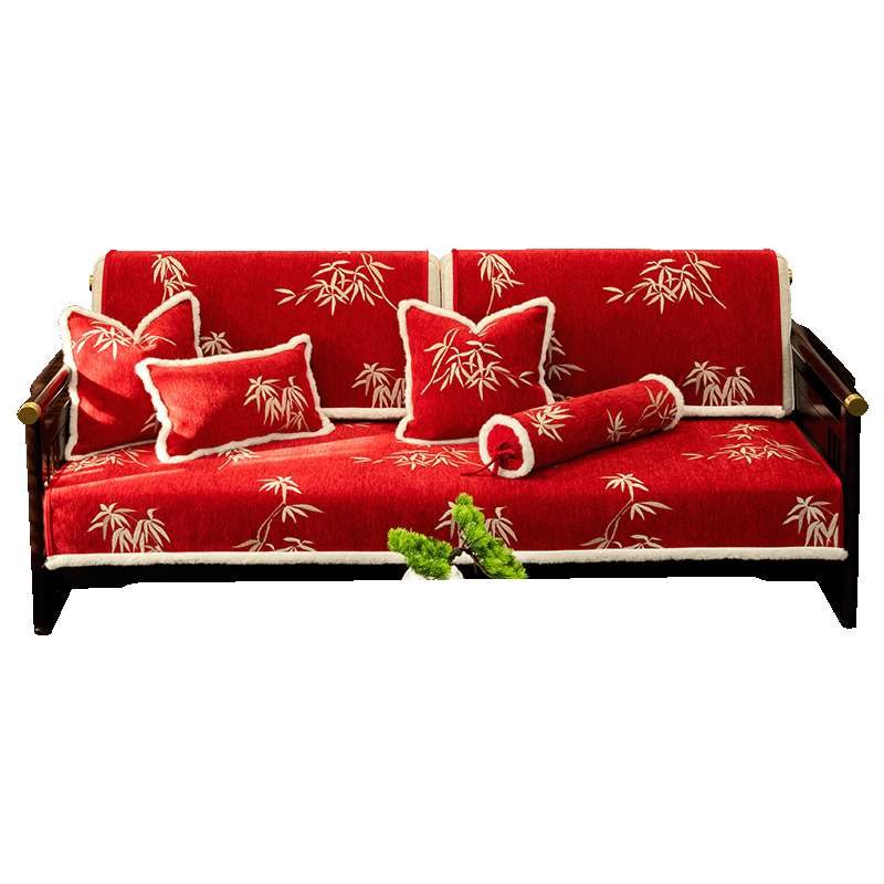 新中式沙发垫新年喜庆国潮红轻奢高级感实木沙发套罩四季通用坐垫
