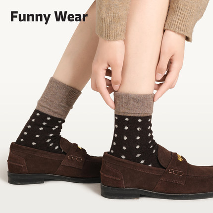 美拉德袜子女秋冬季羊毛中筒袜复古拼色加厚保暖堆堆长袜配乐福鞋