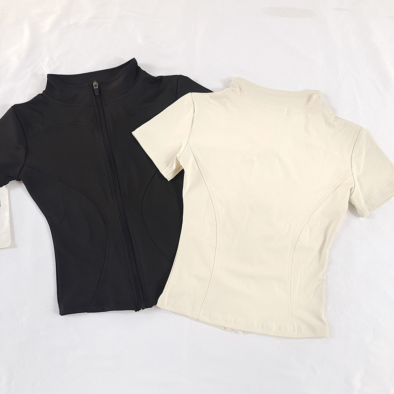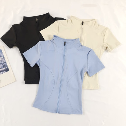 骑行瑜伽服上衣立领高级感全拉链运动T恤健身训练透气跑步短袖夏