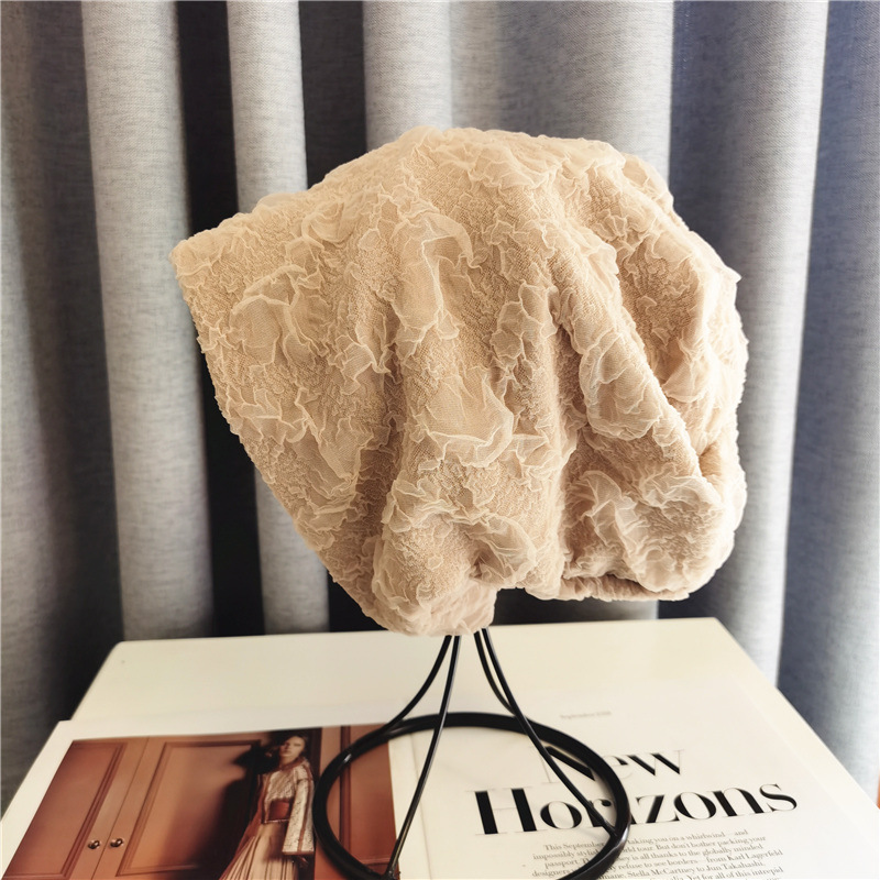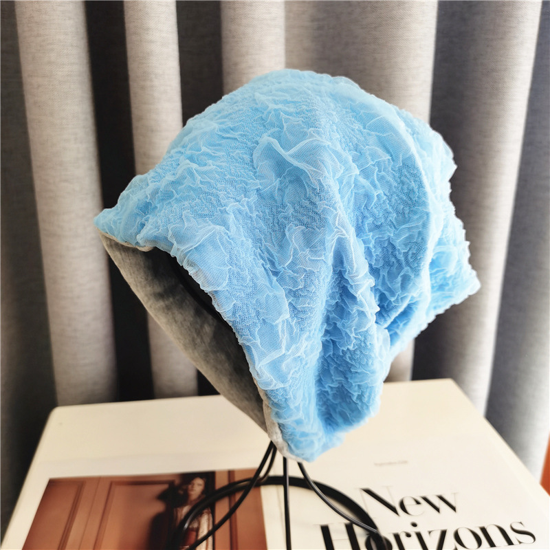 蕾丝帽子女秋冬堆堆帽时尚百搭潮毛线月子帽女士针织包头帽冷帽