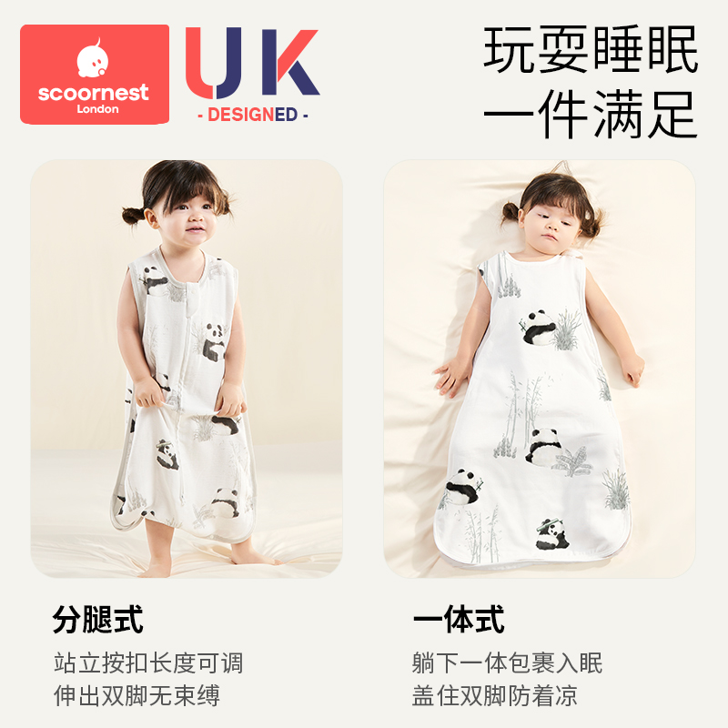 婴儿睡袋天竹棉纱布春秋宝宝无袖背心新生儿童睡觉防踢被夏季薄款