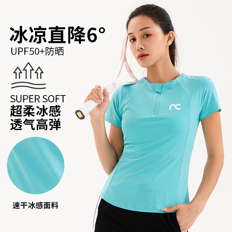 运动速干t恤女士正肩修身透气凉感高弹冰丝短袖健身瑜伽跑步上衣