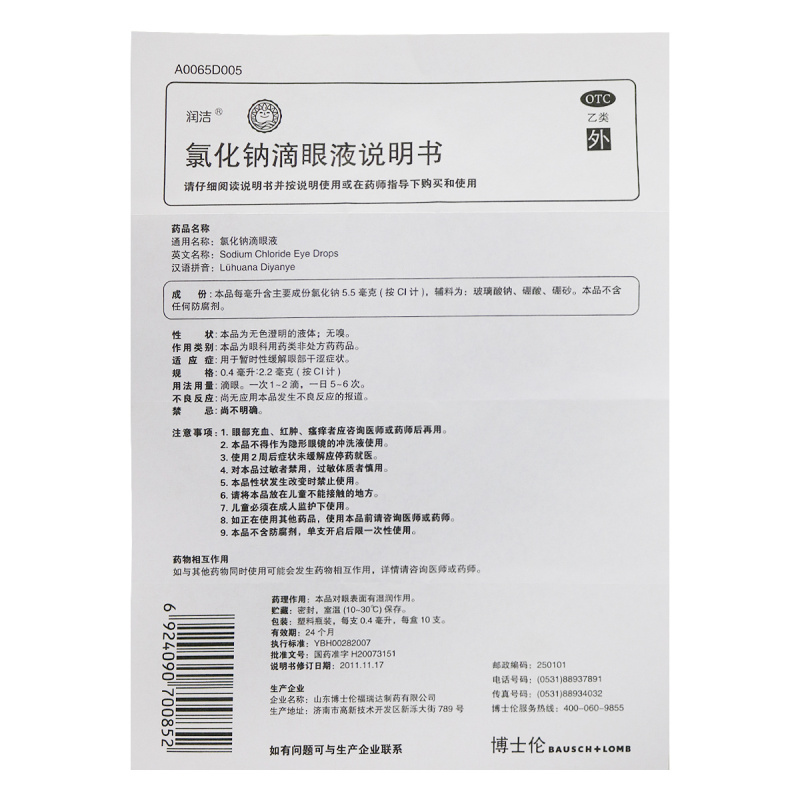 【白润洁】氯化钠滴眼液0.55%*0.4ml*10支/盒