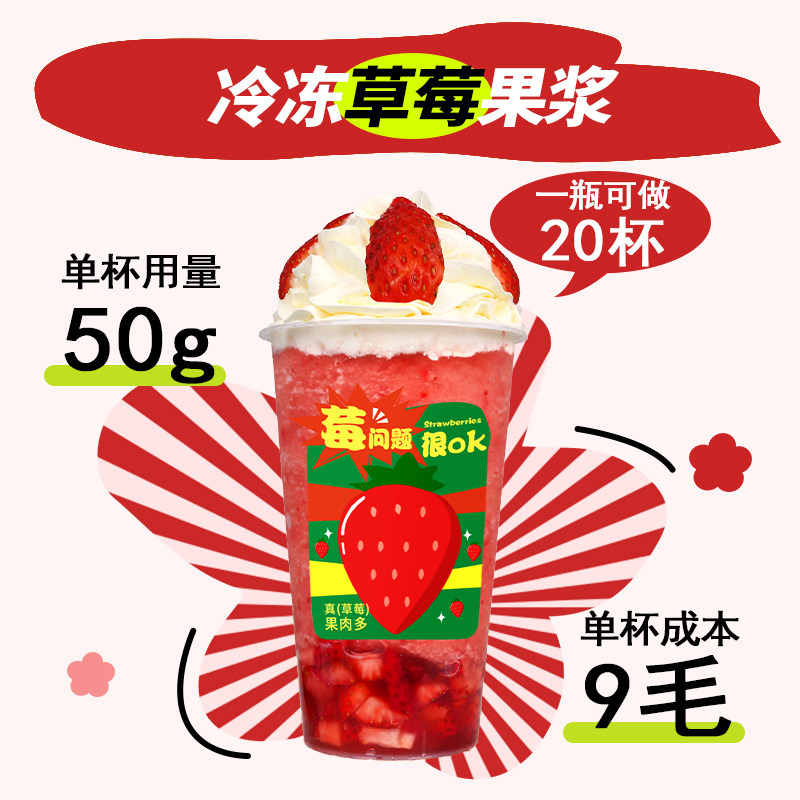 一策冷冻草莓原浆950g 草莓汁含果肉果酱果泥商用芒果奶茶店原料