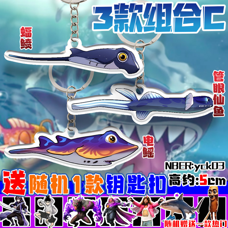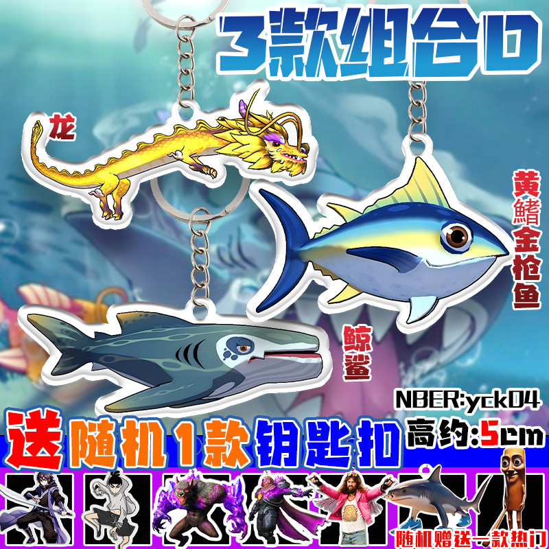 鱼吃鱼游戏周边亚克力钥匙扣鲽鱼稀有鱼图鉴挂件卡通学生书包挂饰