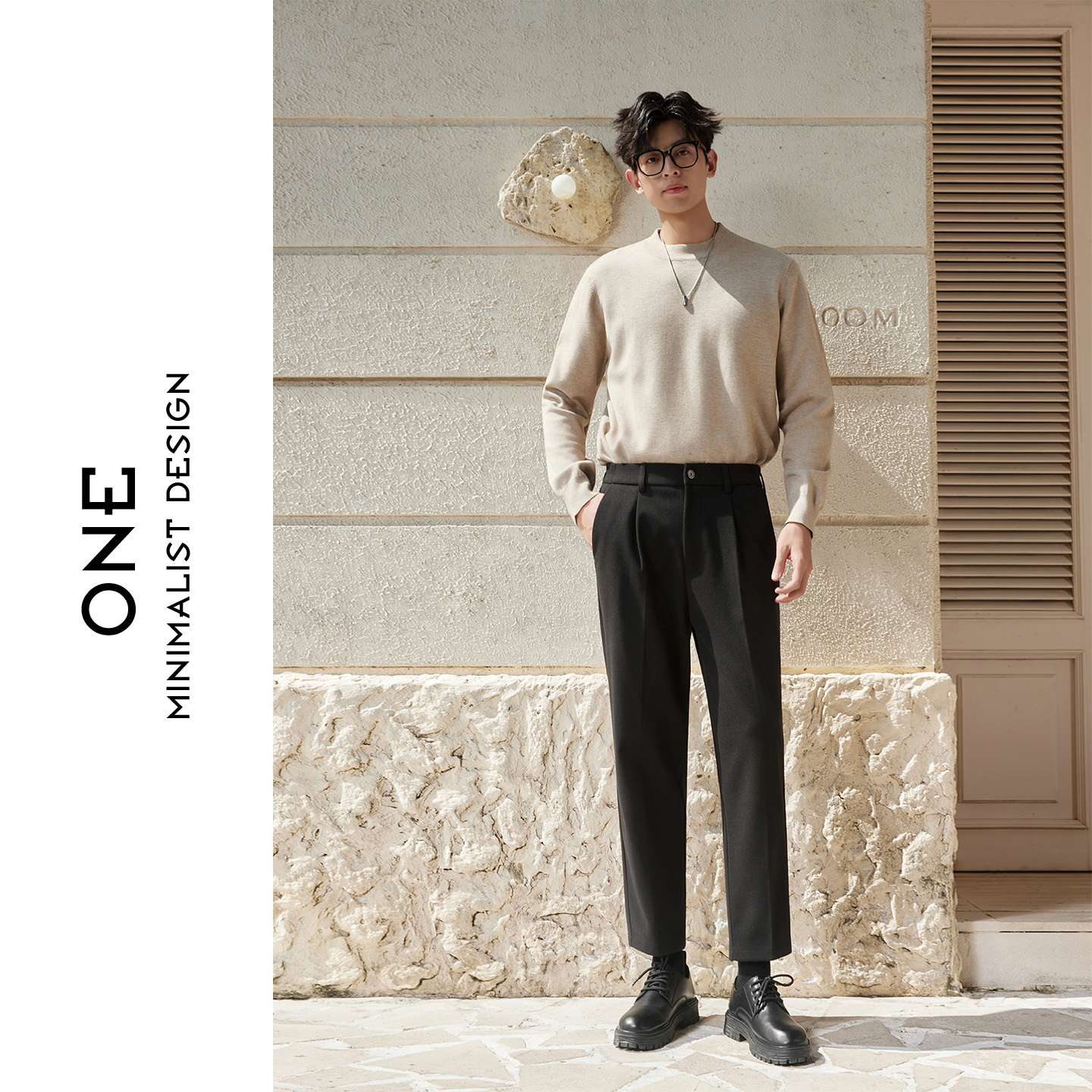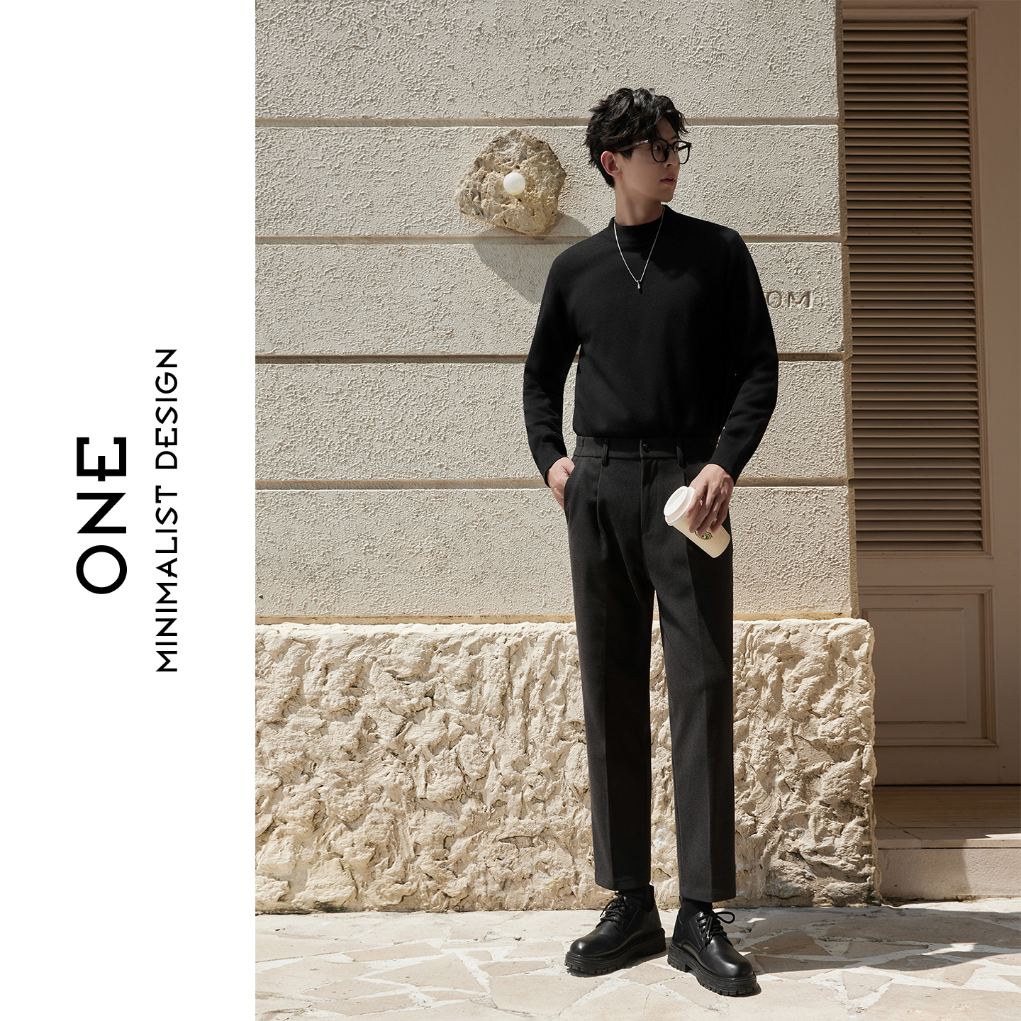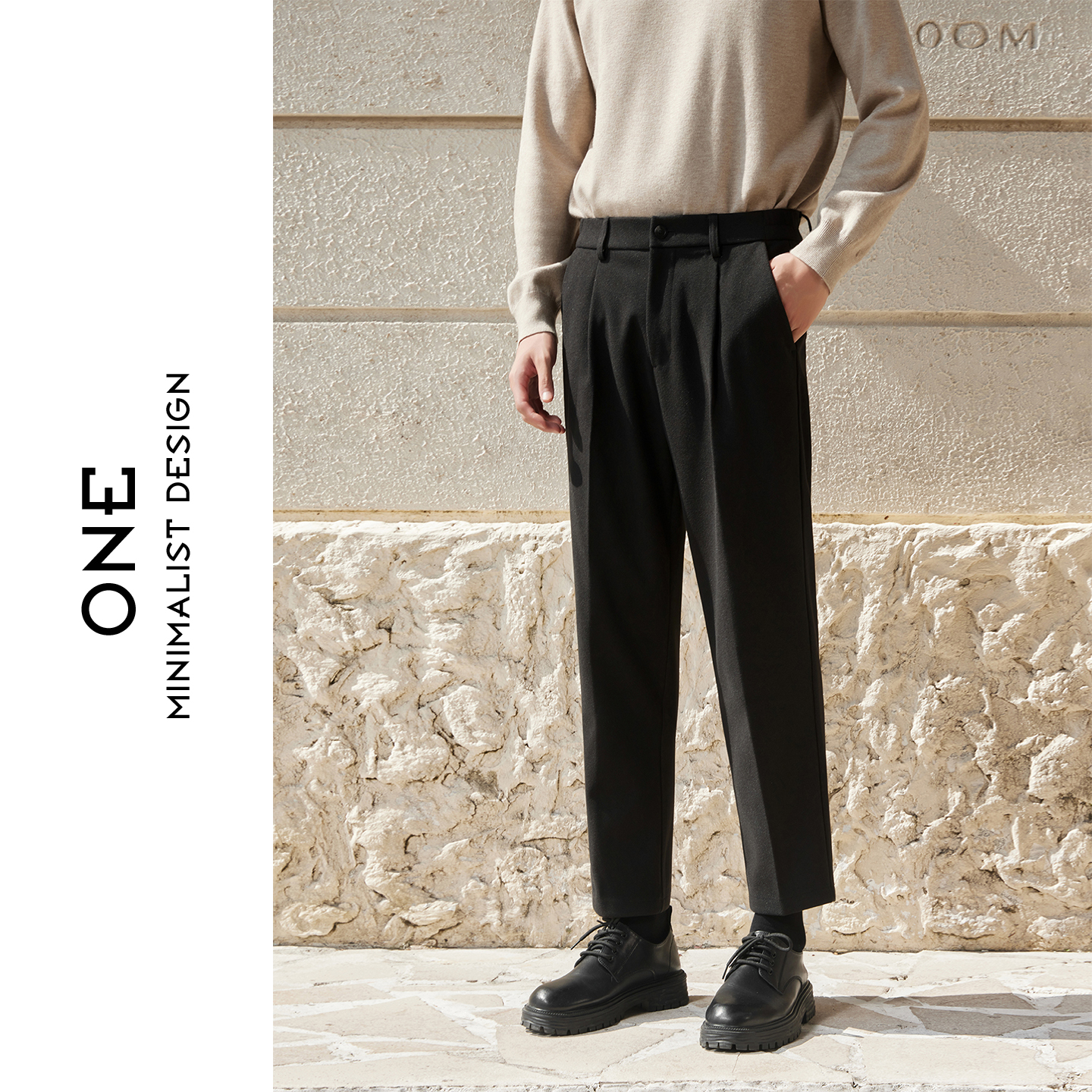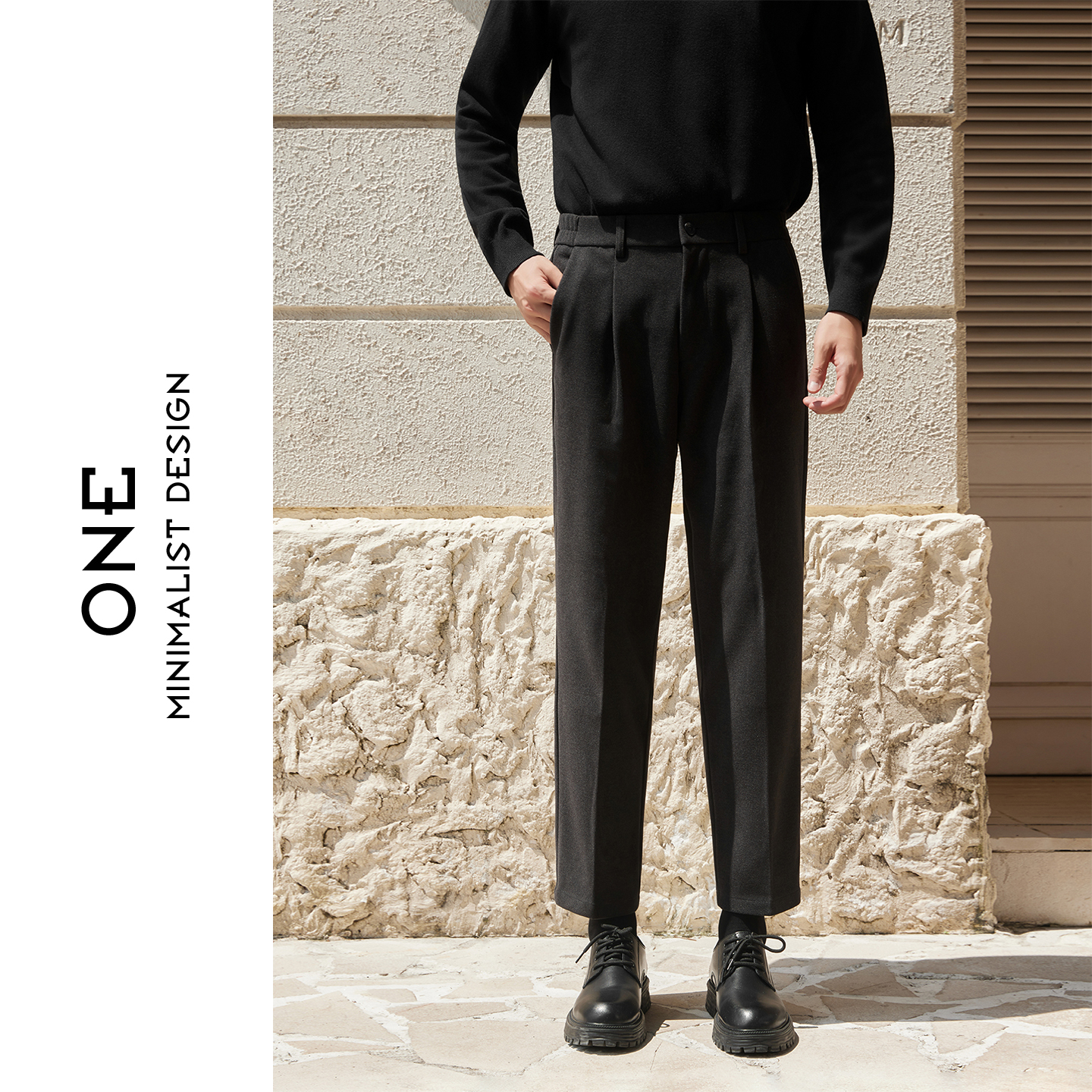 秋冬新款型男士毛呢裤直筒休闲裤加绒保暖显瘦抗皱免烫九分裤男