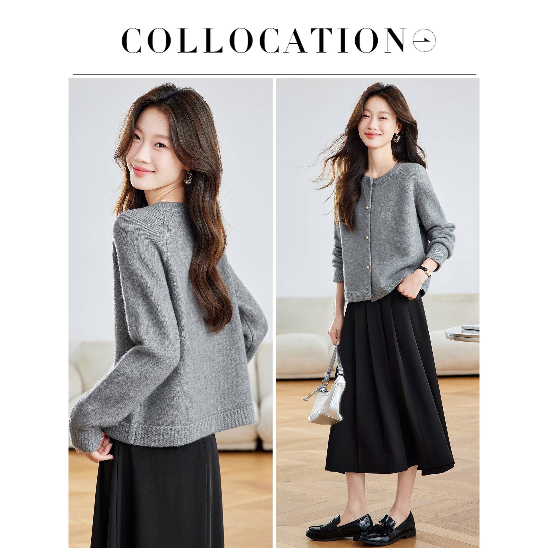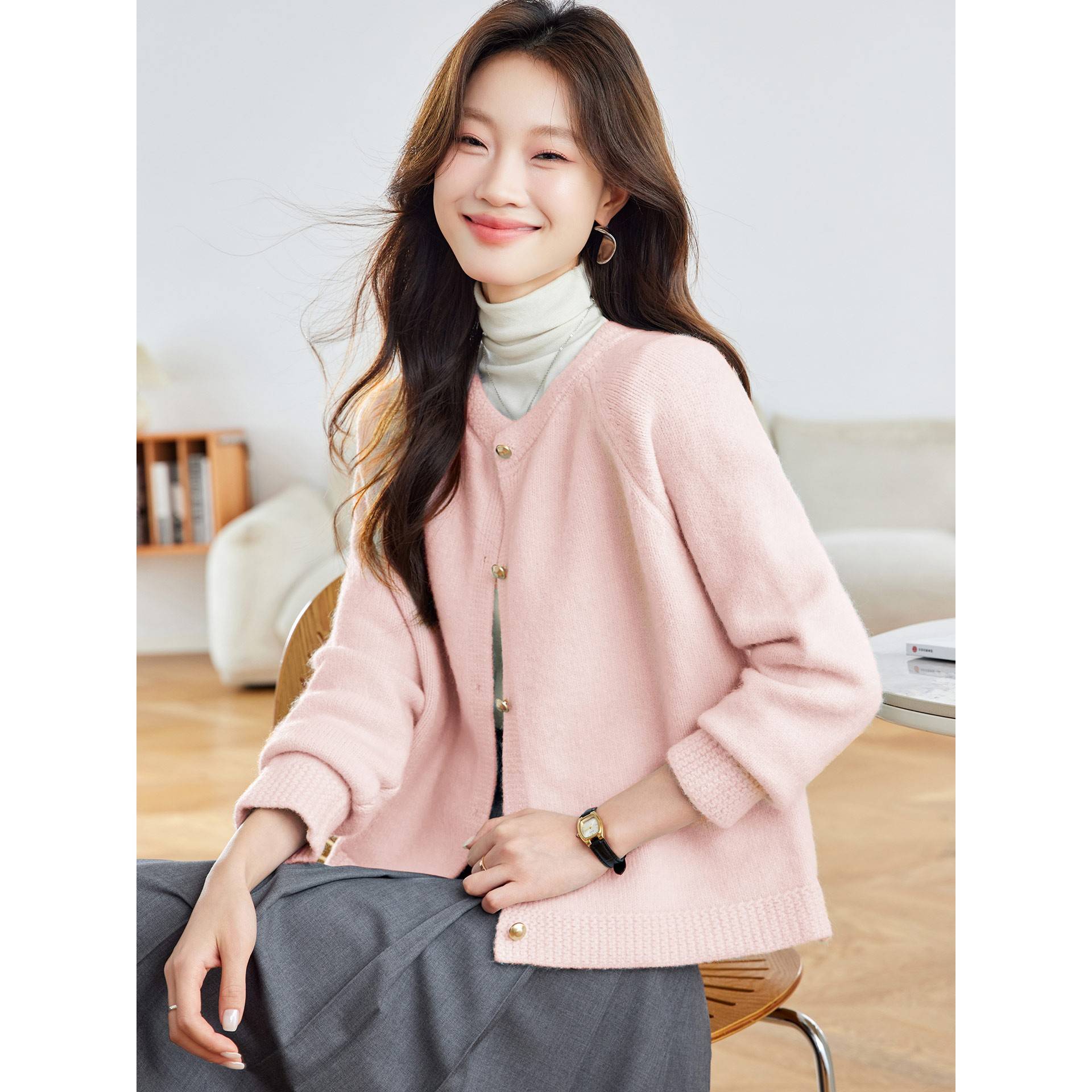 温柔慵懒风圆领针织开衫女短款外搭小个子薄款毛衣外套基础款简约